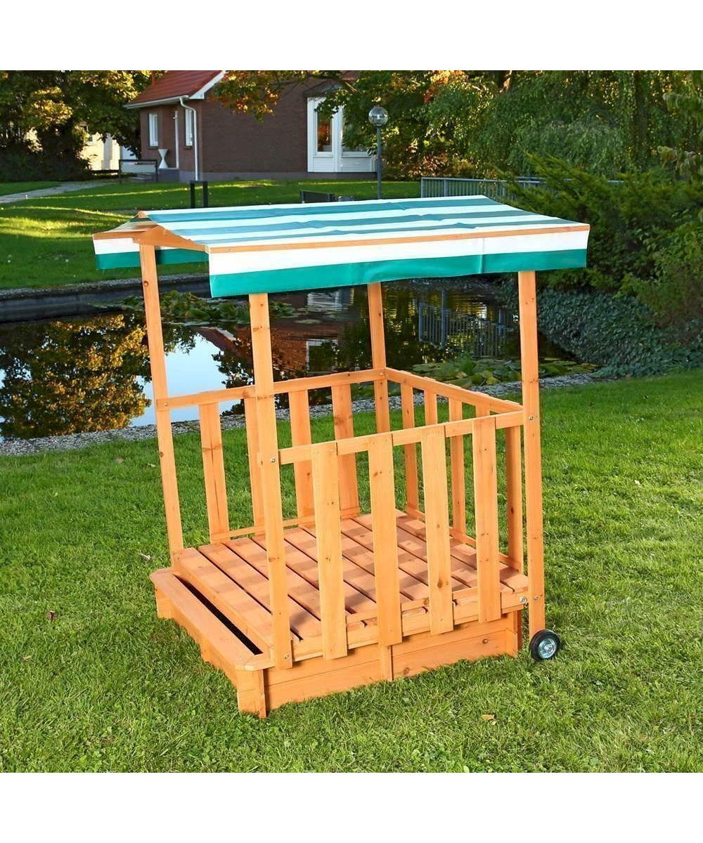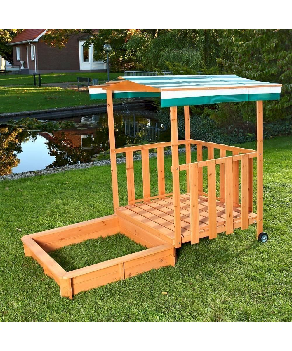 Mucola 50000859 Maison de jeu avec bac à sable Veranda, couvercle de toit en bois de la bac à sable fosse de sable