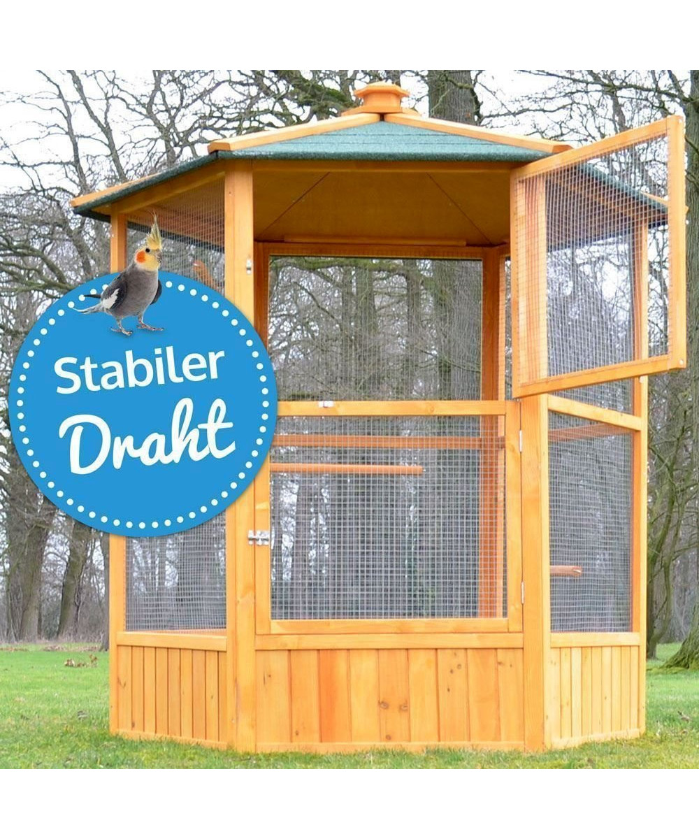 Dennoch würden wir dir einen regen- und windgeschützter Stellplatz für den Vogelkäfig empfehlen, damit deine Tiere vor Zugluft und Regen geschützen sind. Der Vogelkäfig ist äußerst stabil und kann nicht umkippen. Die Türen des Vogelhäuschens lassen sich einzeln oder zusammen öffnen.