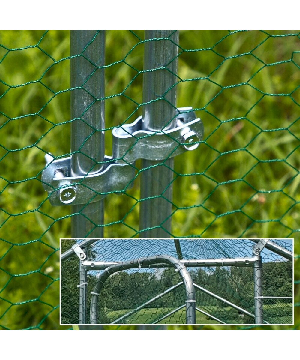 Unser Freilaufgehege / Freigehege bietet Ihren Tieren Auslauf und Schutz vor Sonne, Regen und Fressfeinden aus der Luft. Das Gehege lässt sich einfach und schnell auf der Wiese versetzen und bietet den Tieren somit immer frisches Gras. Ein passendes Sonnensegel gehört ebenso zum Lieferumfang wie das komplette Montage- und Befestigungsmaterial. Für eine lange Lebensdauer sorgen die verzinkten Stangen und das grün beschichtete Drahtgeflecht.