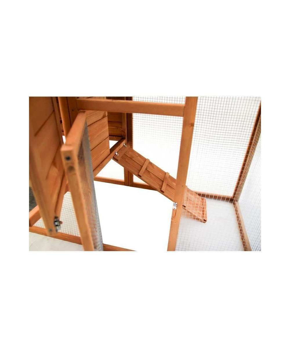 Notre enclos en bois pour petits animaux se compose de 2 niveaux – la 2e Le niveau peut être atteint facilement grâce à une rampe. Les grillages métalliques sont galvanisés et le bec complet est résistant aux intempéries. Il offre beaucoup d'espace pour vos animaux de compagnie. Grâce à un tiroir coulissant, l'enclos peut être facilement nettoyé.