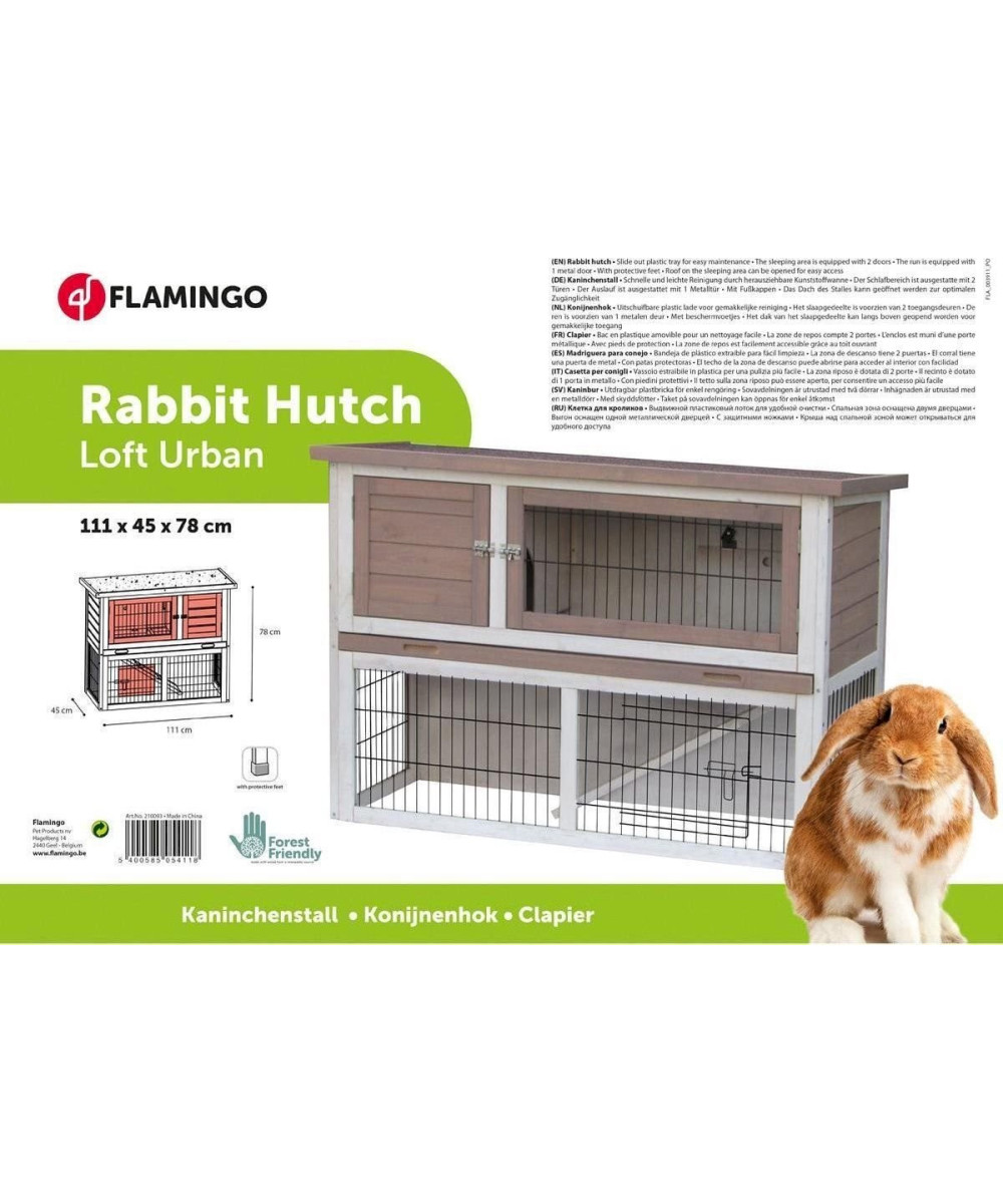 Le clapier rustique Loft Urban de la marque FLAMINGO est un lieu de jeu et de repos idéal pour votre lapin.