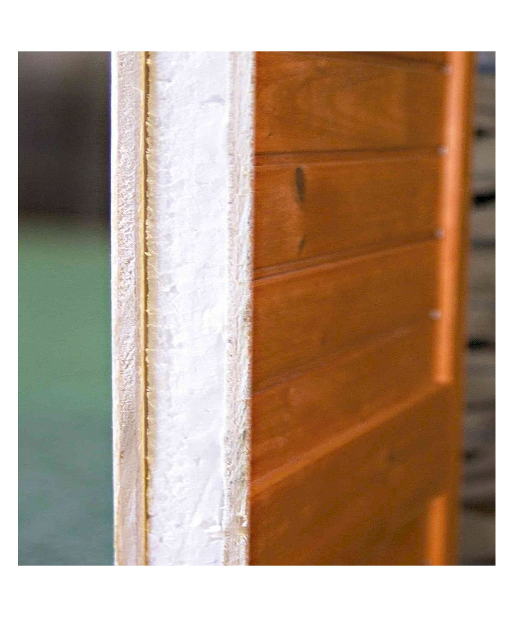 - parois extérieures, bac inférieur et toit avec isolation intérieure en mousse de polystyrène