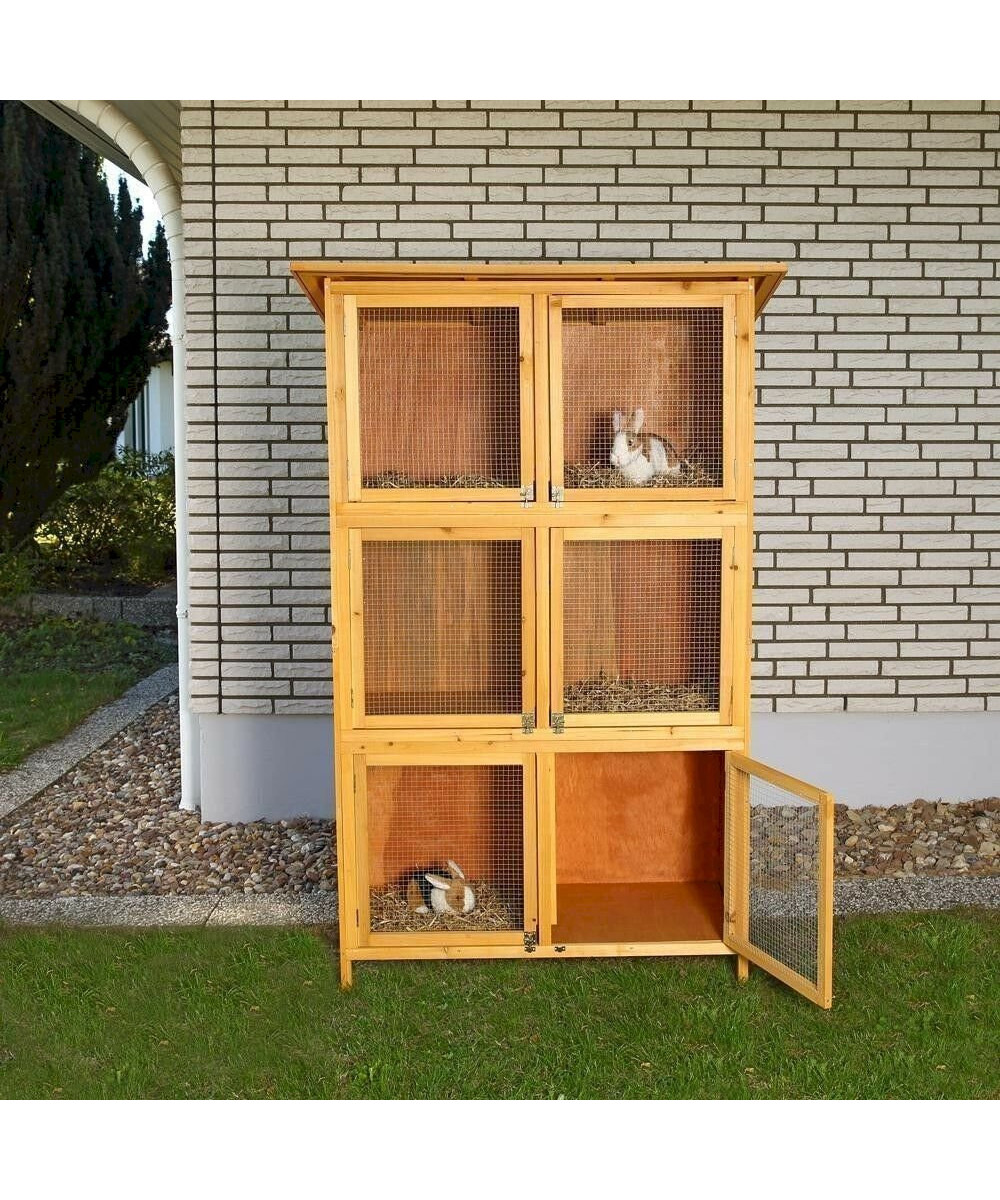 L'étable n'est pas seulement adaptée aux lapins, mais peut également être utilisée pour d'autres petits animaux tels que les cobayes et les chinchillas. Grâce aux 6 cases, vous avez la possibilité de séparer les animaux selon l'espèce, le groupe d'âge ou le sexe.