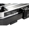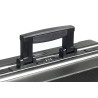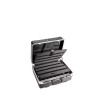 Mallette à outils en matériau plastique ABS très robuste. Un cadre en aluminium robuste et un rebord de protection au niveau des arêtes protègent la mallette ainsi que les outils qu'elle contient. 2 verrous à bascule et un verrou à code B&W PROFIcode offrent un niveau de sécurité supérieur. 4 patins en caoutchouc permettent de ne pas abîmer la mallette et de lui offrir une meilleure stabilité au sol. Une poignée robuste et agréable à prendre en main vous offre le confort nécessaire pendant le transport de la mallette. Sa coque inférieure est réglable à l'aide de barres en aluminium (2 barres de séparation en alu, 4 embouts d'extremité, 2 embouts centraux). La "Flex Loops" est dotée d'un panneau porte-outils amovible dans sa coque supérieure avec des sangles élastiques sur ses faces avant et arrière et d'un panneau de recouvrement amovible dans la coque inférieure avec sangles élastiques.