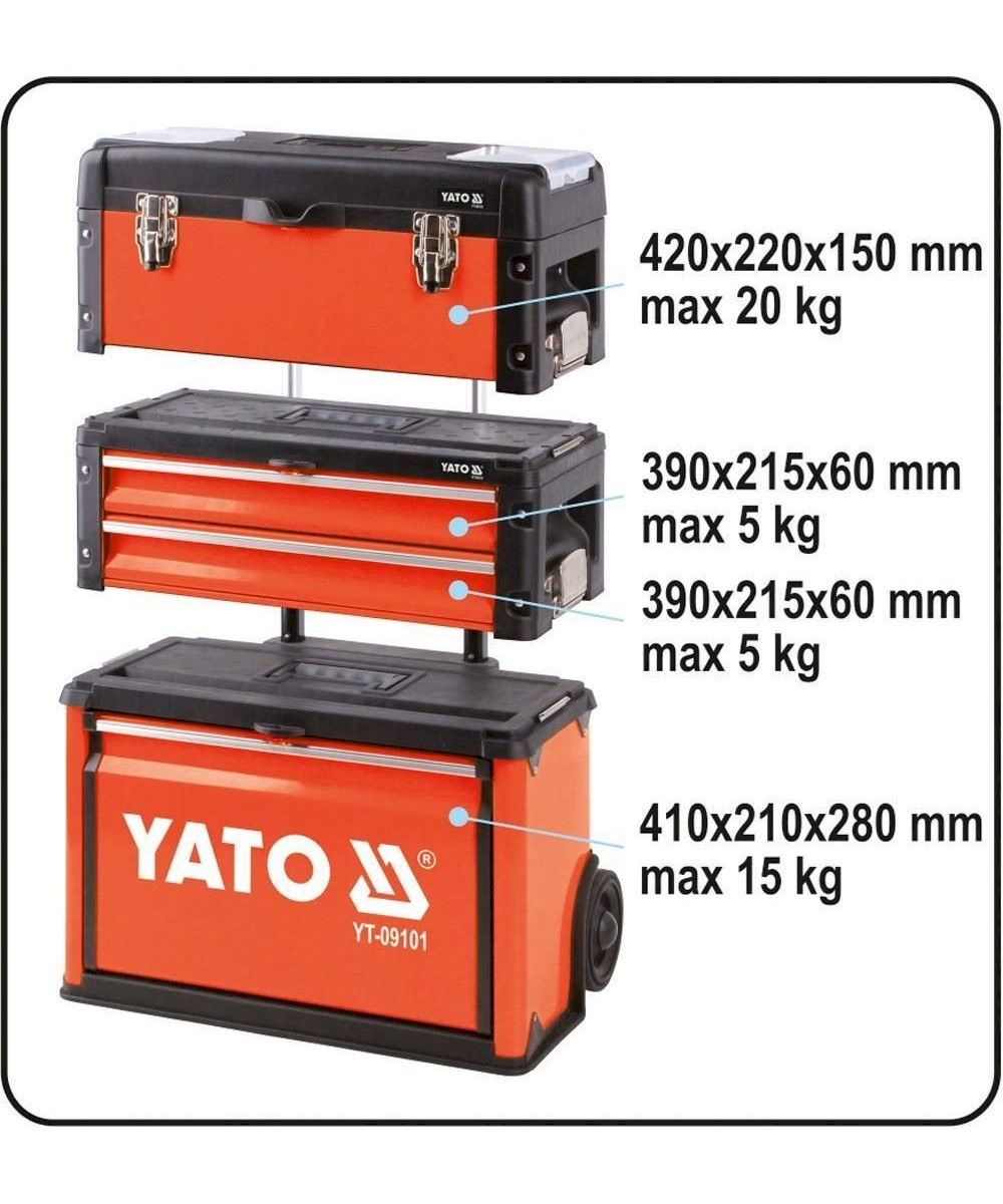 - Le module supérieur est une des dimensions de la boîte à outils et de la capacité 20 kg 420x220x150mm muni de deux organisateurs de la barre d'outil coulissant et