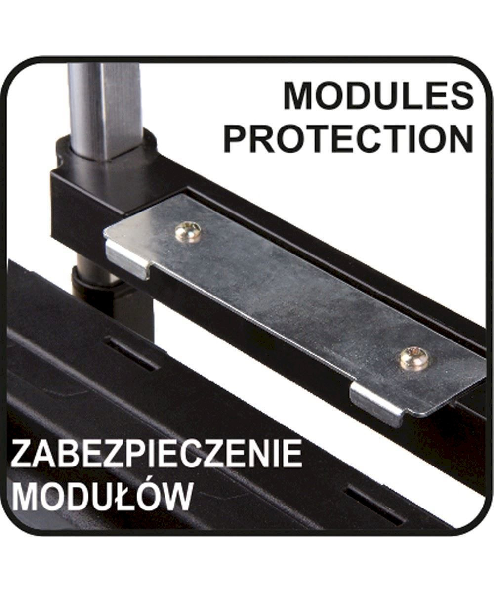 - Chacun des modules est pourvu d'une poignée anti-dérapante pour faciliter le transport et les coins latéraux antidérapants