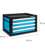 - 4 TIROIRS: La caisse à outils EBERTH a quatre tiroirs de même taille, 530 x 400 x 75 mm. Les tiroirs métalliques sont suspendus à des rails télescopiques à roulement à billes, ils s'ouvrent et se ferment en douceur même lorsqu'ils sont pleins