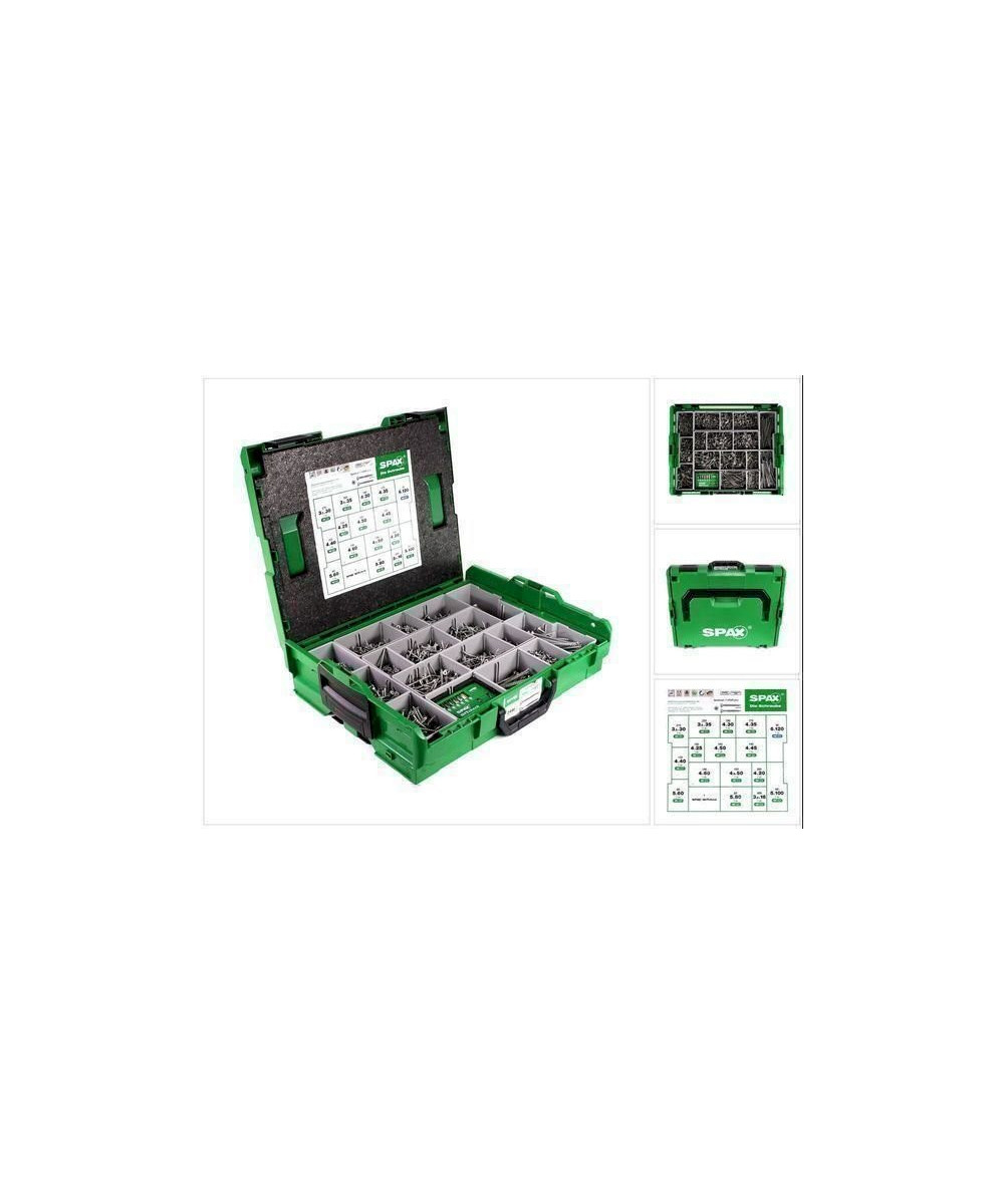 SPAX Montagekoffer Schraubenset 2446 tlg. mit 16 Abmessungen, Senkkopf, T-STAR plus, 4CUT, WIROX in L-Boxx (