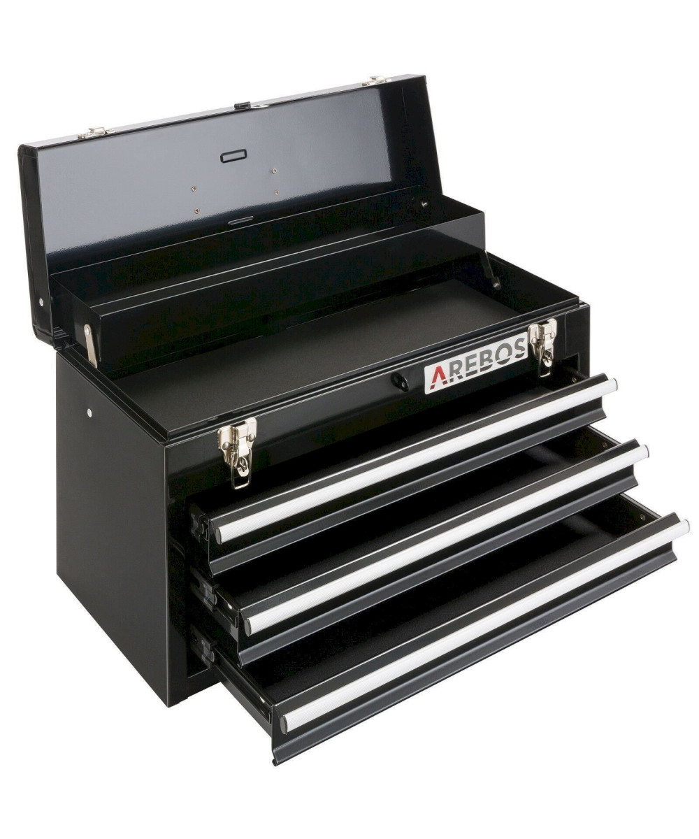 Arebos Boîte à Outils 3 Tiroirs Noir