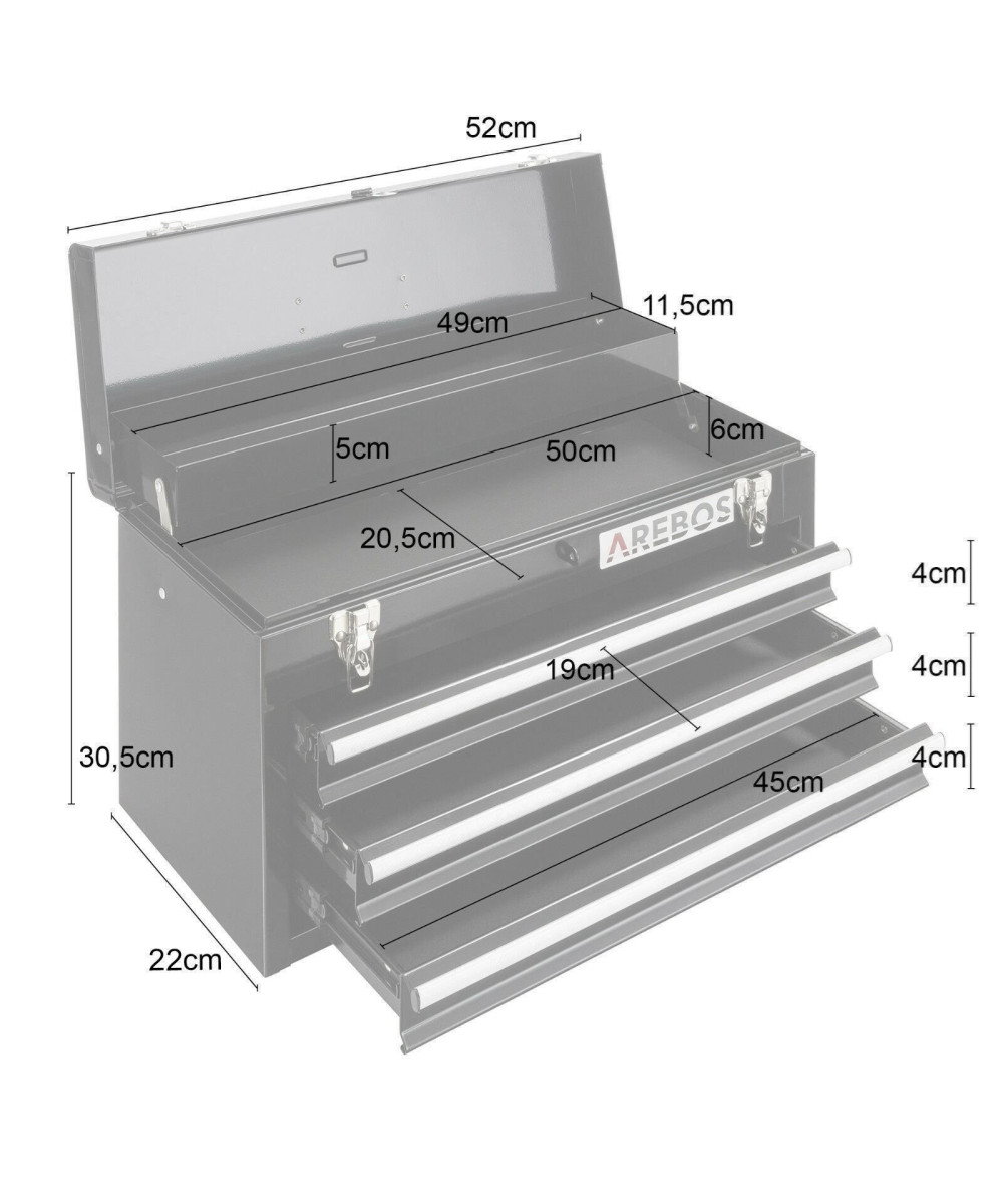 - Boîte à outils totale: 52 x 22 x 30,5 cm
