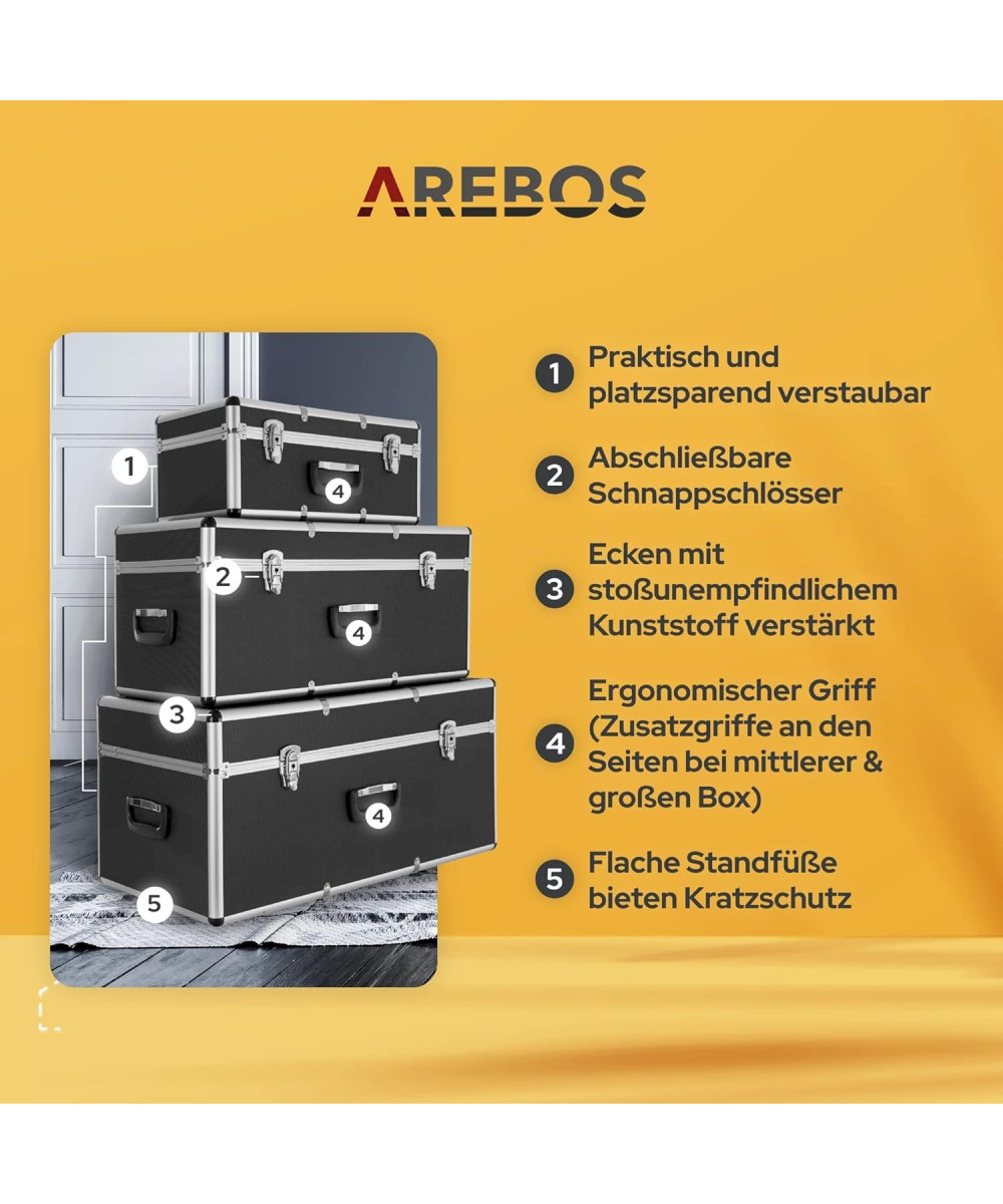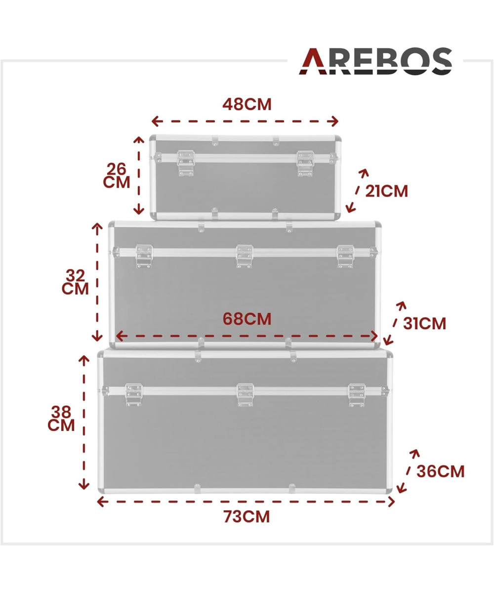 Arebos set de 3 valises de transport verrouillables avec poignées