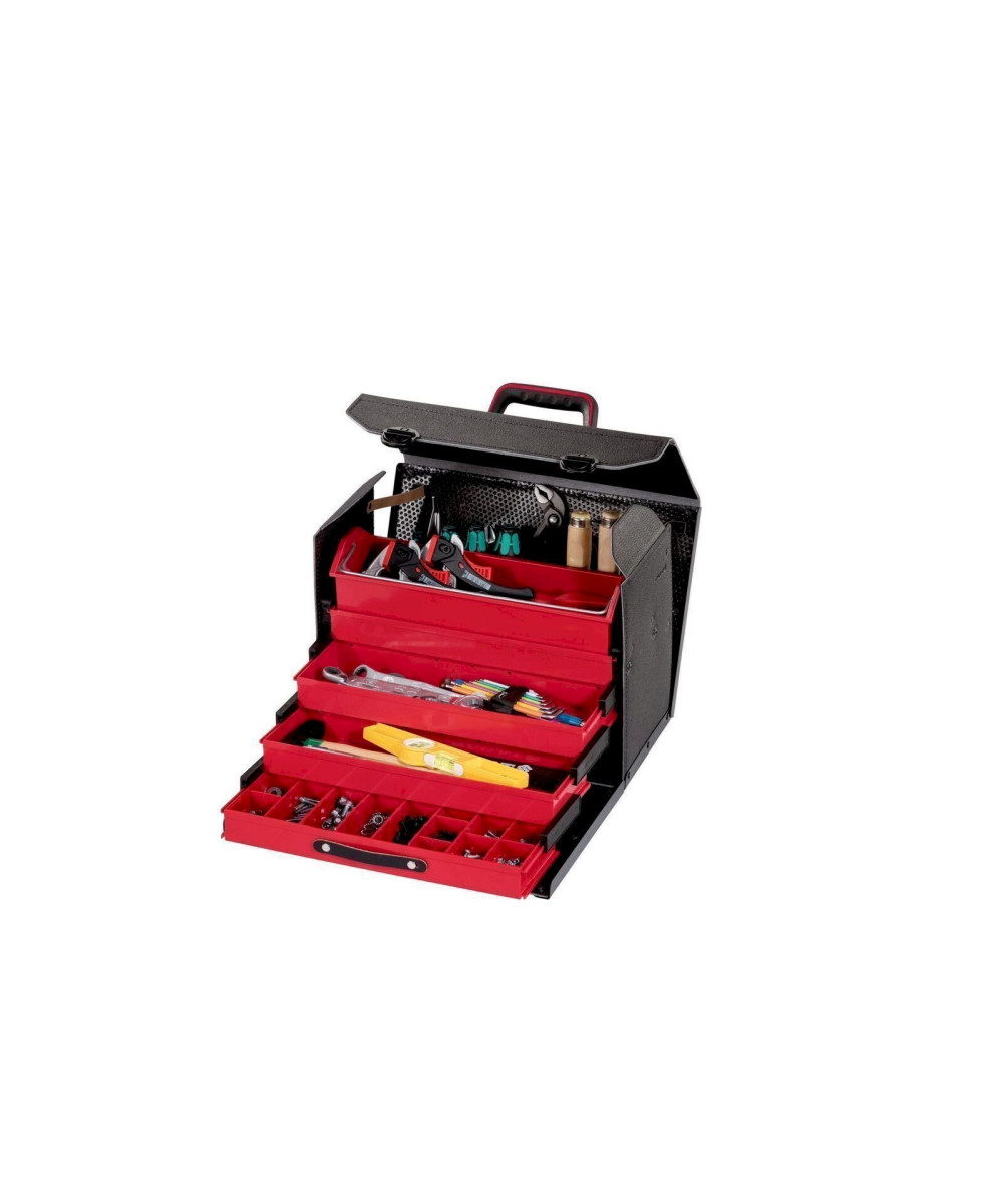En plus de ses quatre tiroirs, elle est équipée de deux porte-outils CP-7 appliqués sur le panneau avant et le panneau arrière. Le panneau arrière est dépliable pour faciliter laccès aux outils. Il suffit de déplier le panneau avant pour accéder aux quatre tiroirs. Ces tiroirs peuvent contenir des outils ou des petites pièces. Cette sacoche est compartimentable librement, elle est donc idéale pour le transport de matériel comme des vis, des joints ou des écrous.