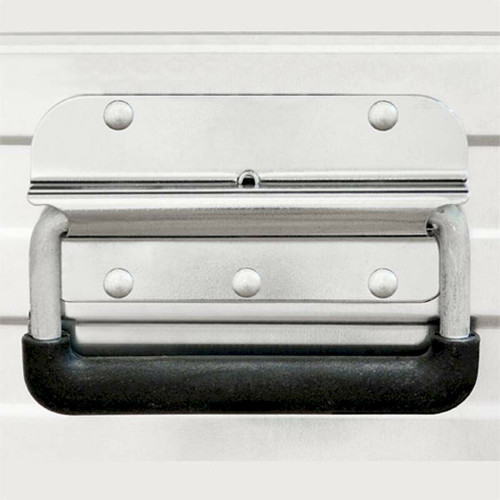 Poignées laterales de la aluminium caisseLa aluminium caisse tressé poignées des deux cotés. Ils peuvent également etre transportés par paires avec une lourde charge.