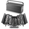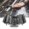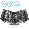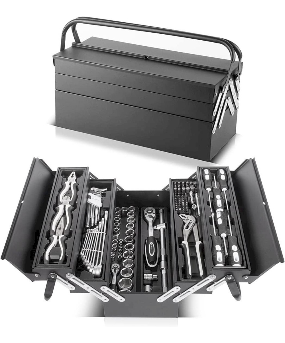 - Coffre à outils revêtu par poudre, équipé de 128 outils professionnels en chrome-vanadium de haute qualité.