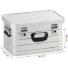 La aluminium caisse S 29 L est le plus petit modele de notre gamme le compagnon ideal pour les deplacements. Il est petit, maniable et facile a transporter. Il offre un espace suffisant pour accessoires pour appareils photo, leur CD - et DVD - Collection ou vaisselle de camping au transport. Il convient egalement pour la maison - pour les nombreux petits objets, qui ne sont pas trainer en vrac, mais vous voulez garder: cable, adaptateur, photos, cartes postales anciennes et bien plus encore.