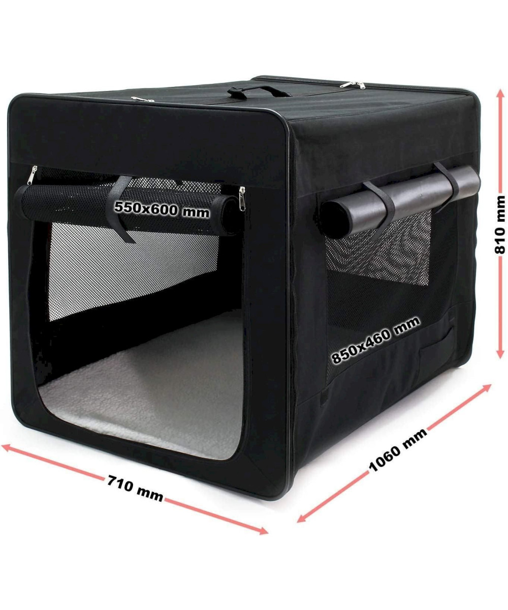 La taille de 106 x 71 x 81 cm convient parfaitement au transport de grands chiens de race dont le poids ne doit pas dépasser 35 kg, comme les labradors et les golden retrievers. Nous vous prions de noter que cette boite n’est pas conçue pour y porter votre animal, mais uniquement pour qu’il s’y installe durant le transport, ou en tant que point de refuge au sein de la maison.