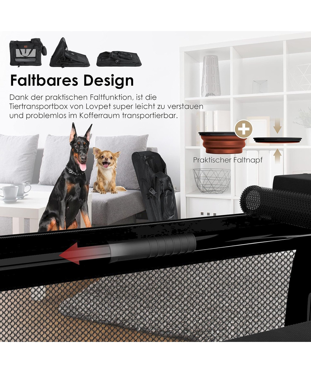 Notre cage pliable pour chien est non seulement beaucoup plus légère que les caisses en aluminium ou en plastique, mais aussi extrêmement pratique et flexible. Grâce au rembourrage intérieur amovible et lavable, la cage de transport sert également de lieu de couchage.