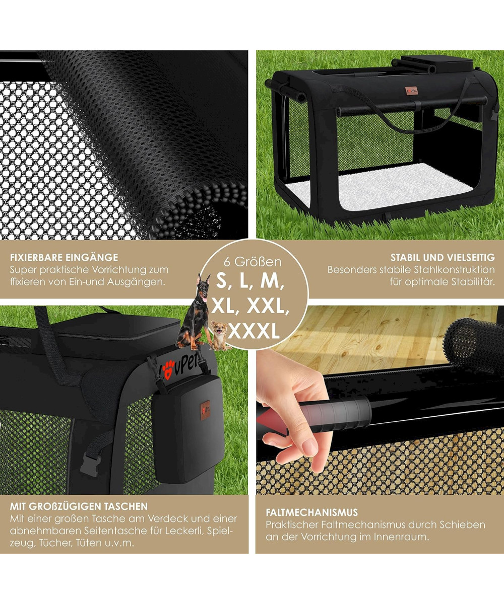 Que ce soit pour les visites vétérinaires, les excursions ou les voyages en vacances, notre cage de transport est indispensable pour les chiens et les propriétaires de chats. La cage pour chien idéale aide votre animal de compagnie à survivre en toute sécurité et sans stress. De nombreux amis à quatre pattes ont déjà déclaré notre boîte comme votre lieu préféré et ne veulent plus quitter ce sac moelleux et spacieux.