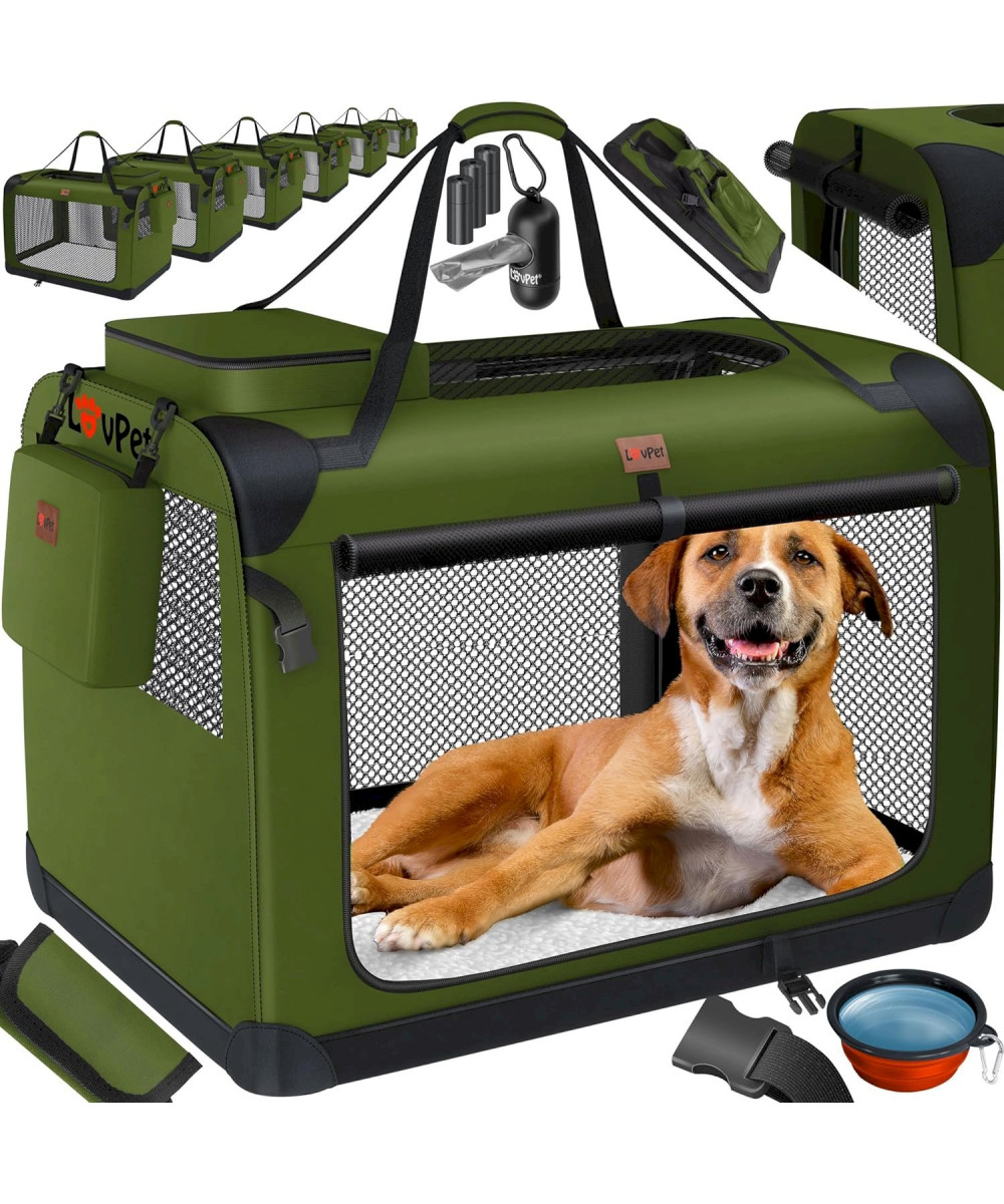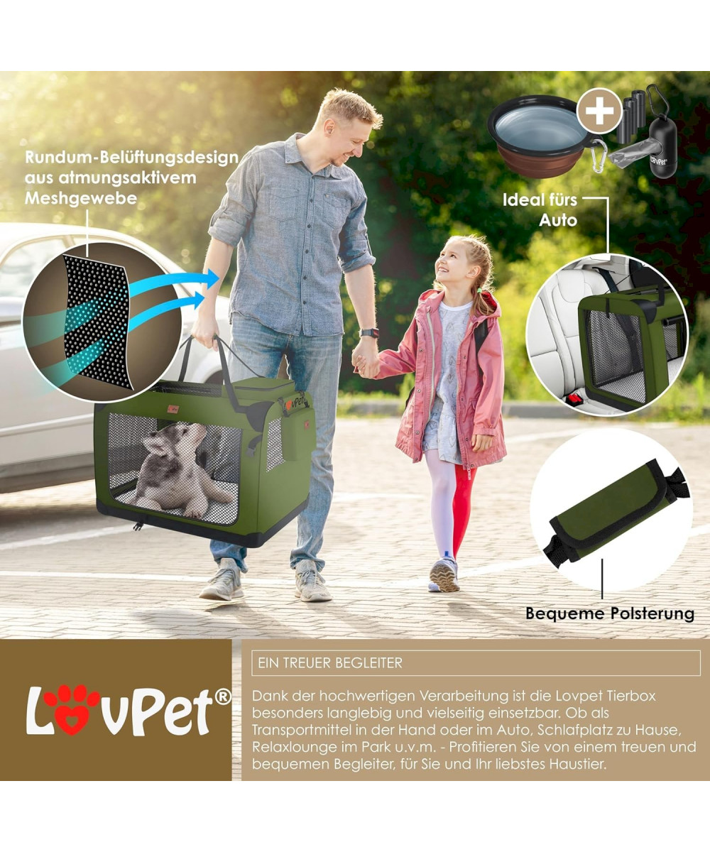 Lovpet caisse de transport pliable pour chien 60x42x42cm kaki