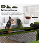 Notre cage pliable pour chien est non seulement beaucoup plus légère que les caisses en aluminium ou en plastique, mais aussi extrêmement pratique et flexible. Grâce au rembourrage intérieur amovible et lavable, la cage de transport sert également de lieu de couchage.