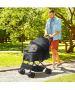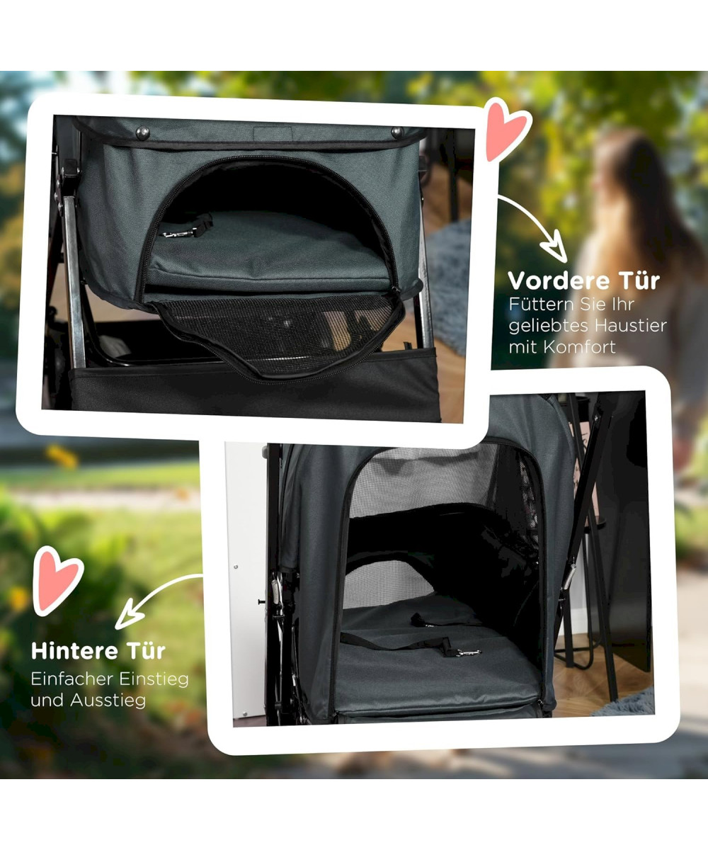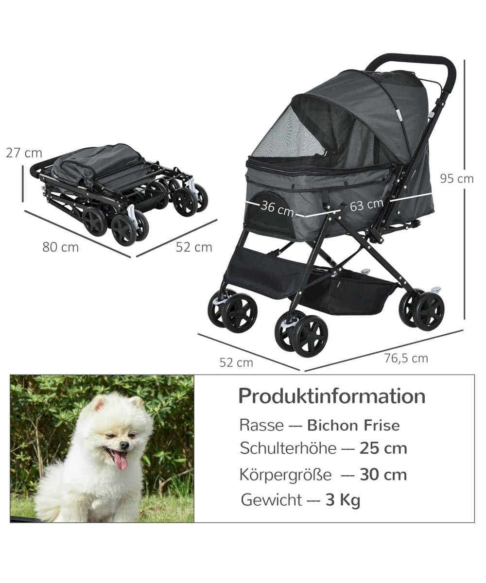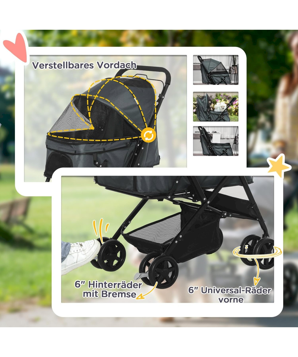 - La position du guidon est réversible, ce qui permet à l'animal de regarder vers l'avant en poussant la poussette.