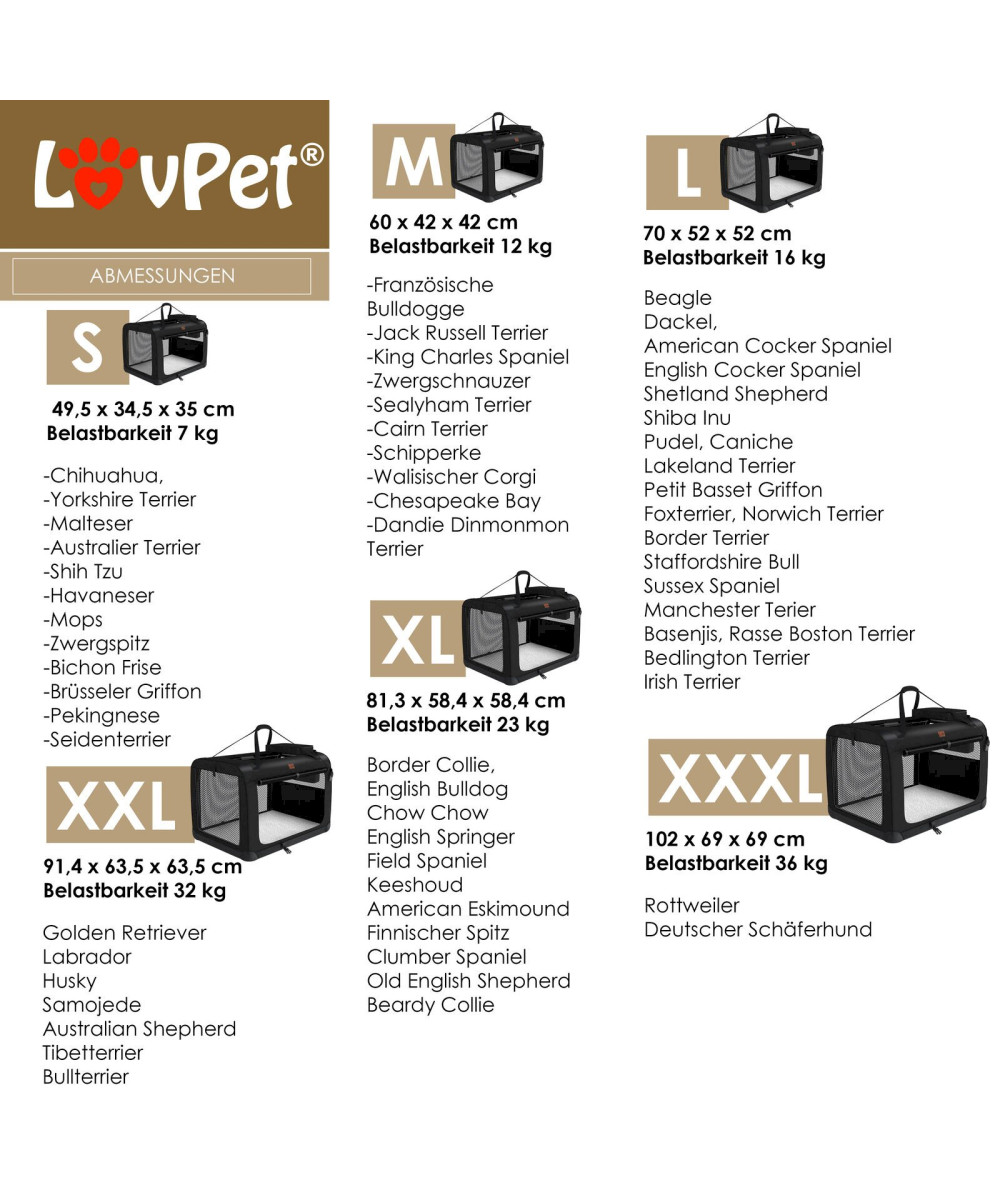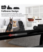 Notre cage pliable pour chien est non seulement beaucoup plus légère que les caisses en aluminium ou en plastique, mais aussi extrêmement pratique et flexible. Grâce au rembourrage intérieur amovible et lavable, la cage de transport sert également de lieu de couchage.