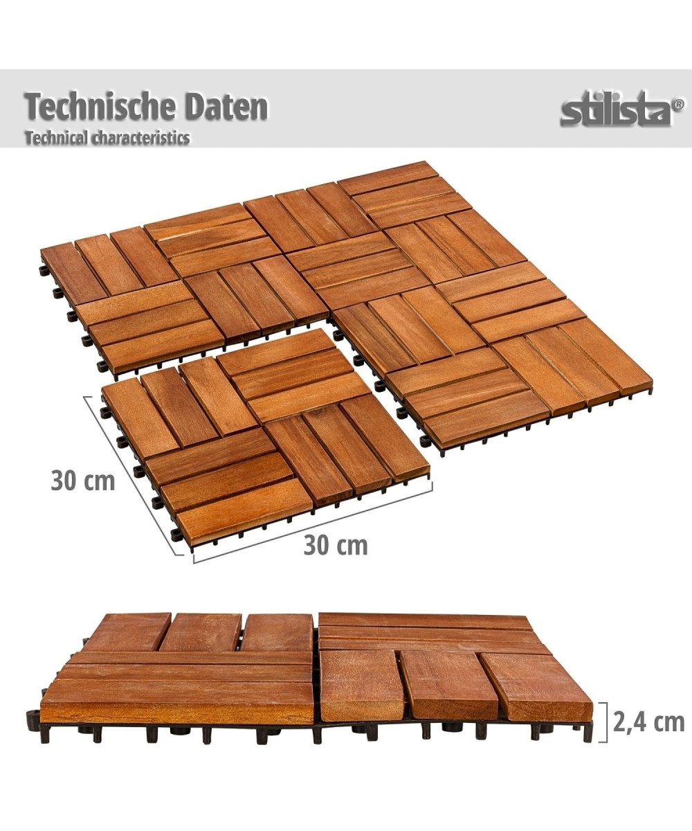 Dalles en bois Stilista - En bois dur d'acacia résistant aux intempéries, robuste et traité après production avec une lasure d'entretien appropriée.