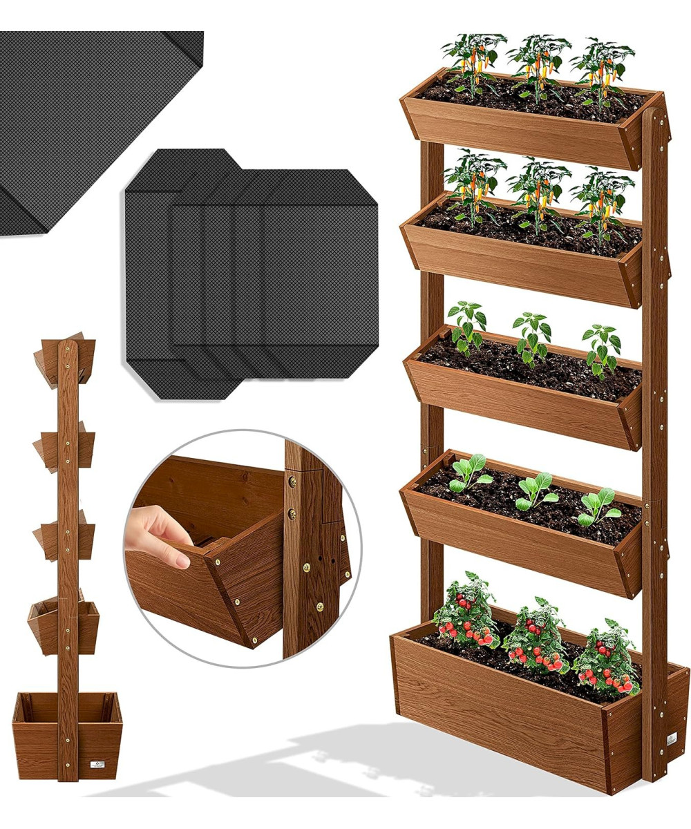 Jardinière surélevé à 5 étages - Bac à fleurs avec toile de jardin brun