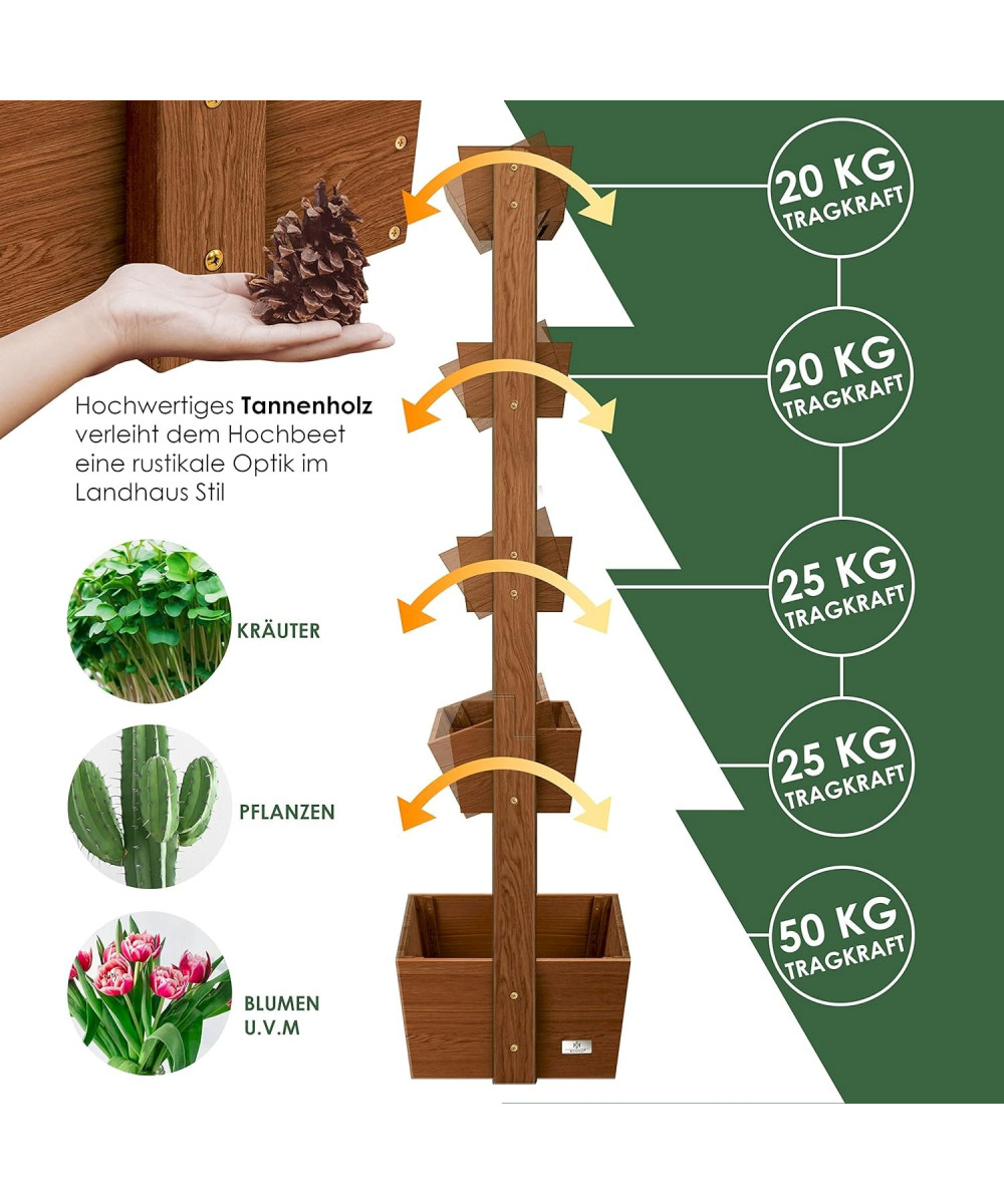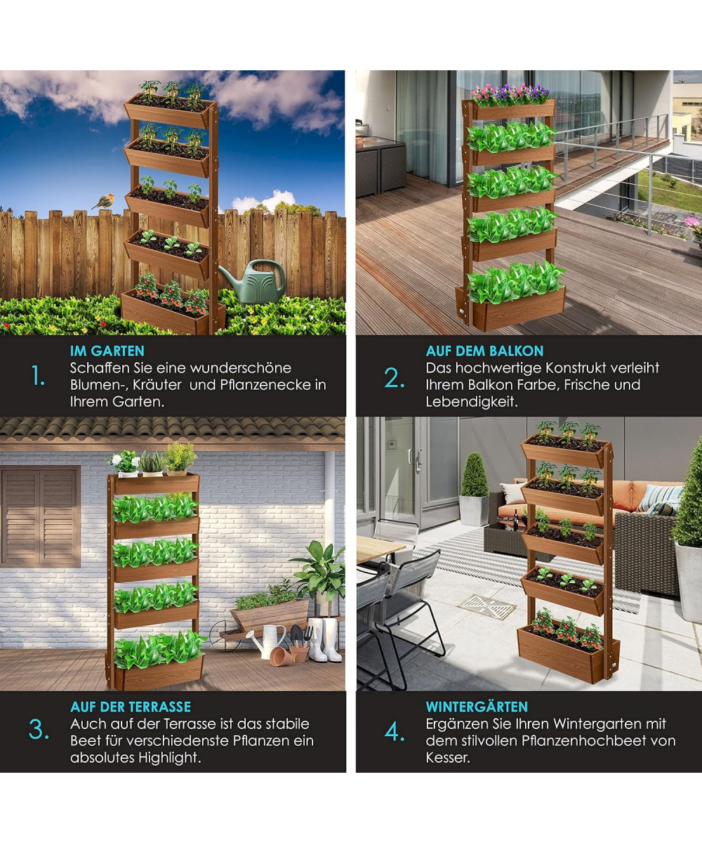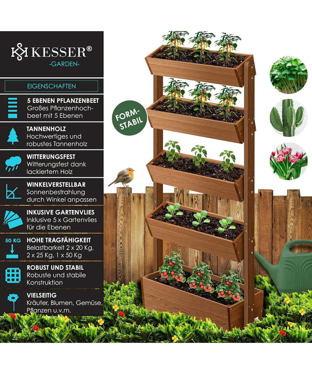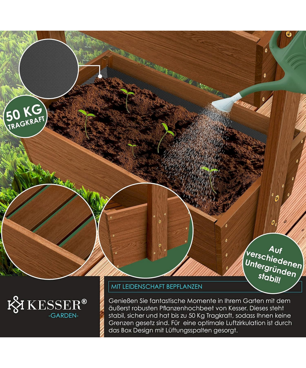 Jardinière surélevée KESSER avec des niveaux très résistants pour une variété de plantes, résistante aux intempéries grâce à la finition de qualité en bois de sapin robuste, rayonnement solaire idéal grâce à l'angle réglable, avec toile de jardin pour tous les niveaux.