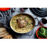Compatible tous feux, y compris l’induction & le four, elle fera office de plat de service & conservera votre plat au chaud longtemps. Sa forte inertie permet de maintenir au chaud après cuisson, même tout feux éteint.