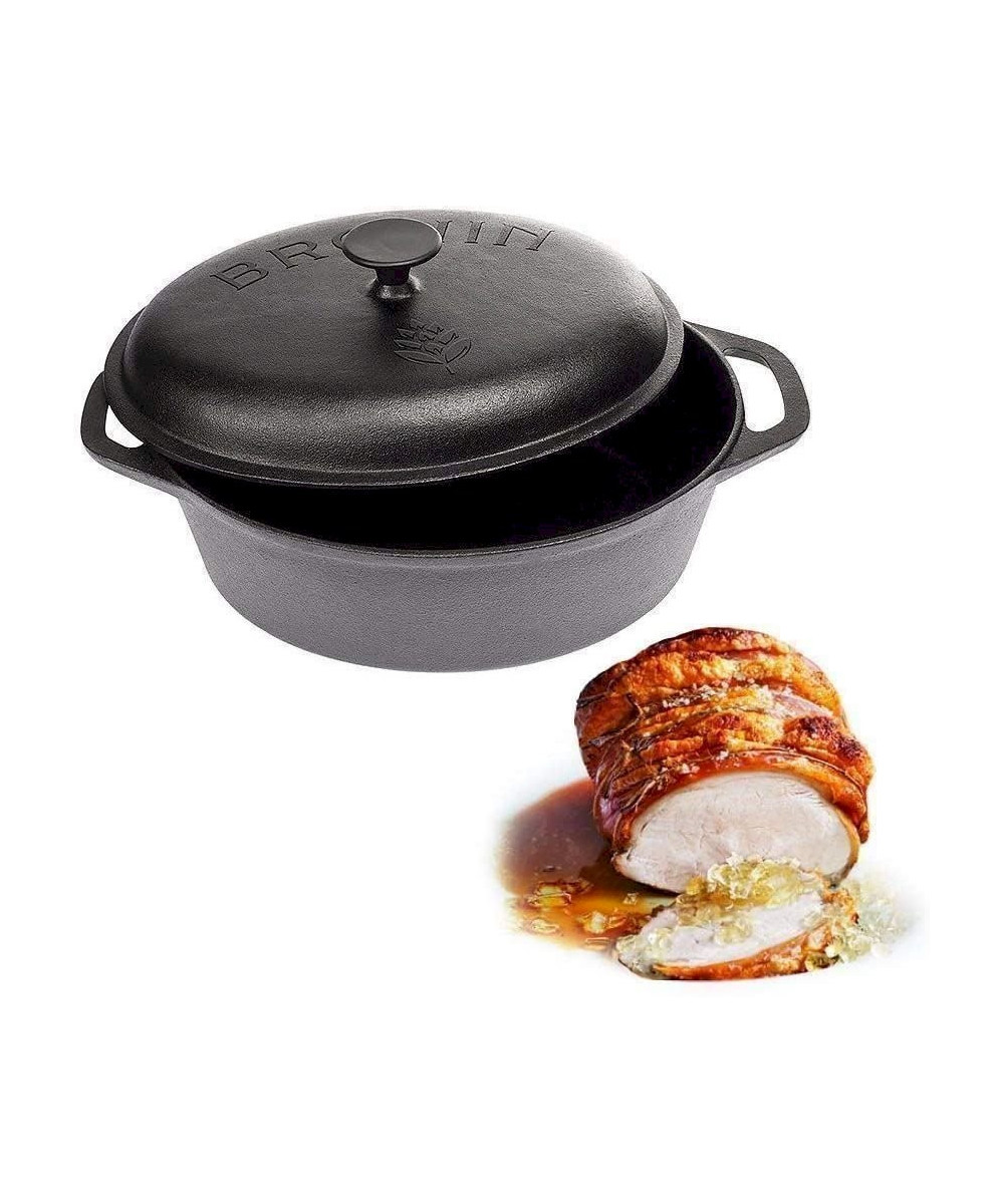 Une grande poêle en fonte de Browin (anciennement Biowin) est un récipient multifonction qui se révèle irremplaçable dans la cuisine de tous les amateurs de cuisine. Le produit permet non seulement de cuire, mais aussi de braiser, rôtir et cuisiner différentes séries de viandes et de légumes. Les plats préparés dans une casserole en fonte sont extrêmement aromatiques, juteux et délicieux. La solide cocotte en fonte est un récipient pour de nombreuses années.