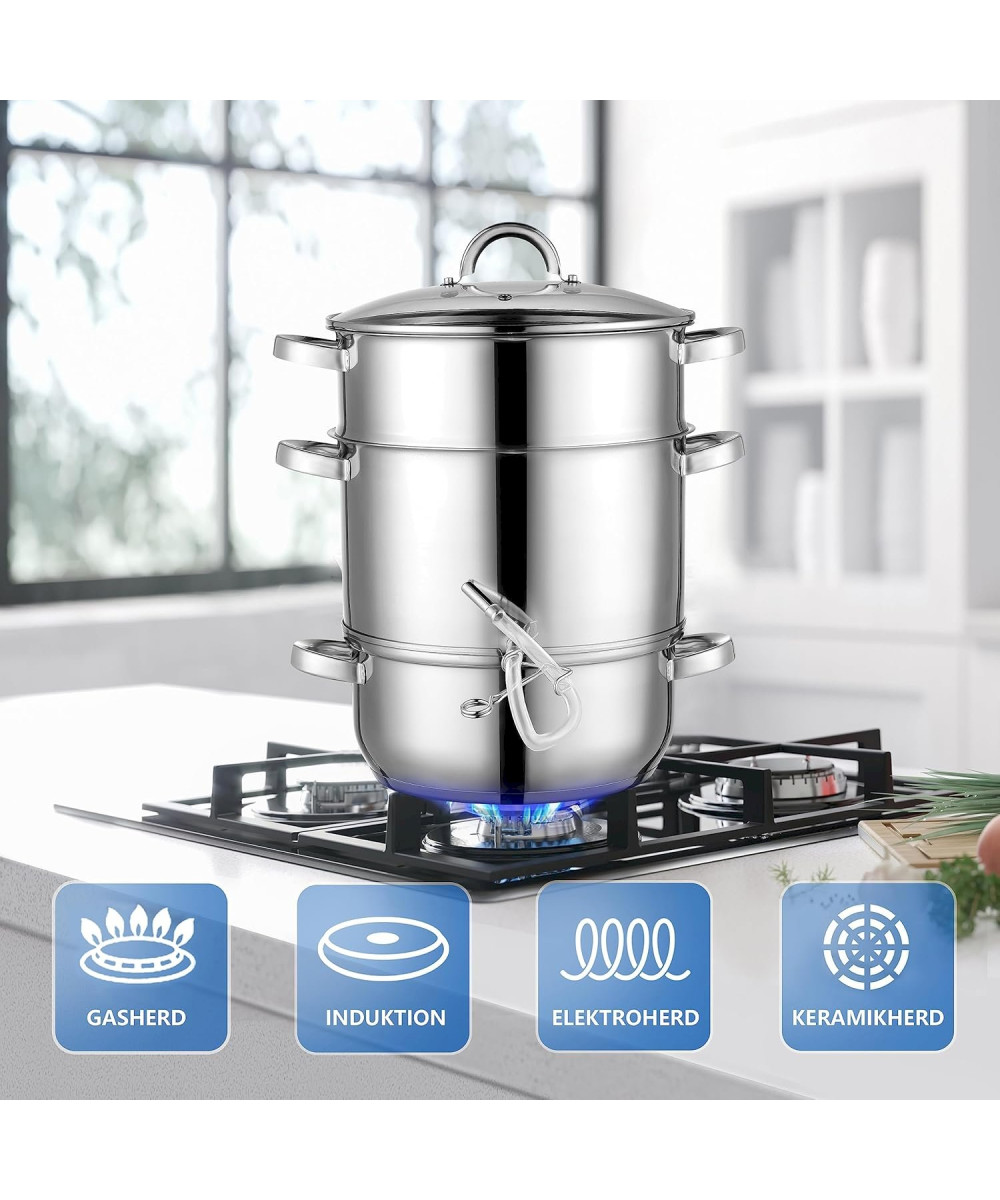Extracteur de Jus à Vapeur Cuiseur-Vapeur Centrifugeuse à Induction en Acier Inoxydable Presse-fruits 17 L