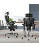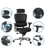 Ce siège marque l?avènement d?une ère nouvelle. Ce siège de bureau de haute technologie fait si qu?on se sent légère comme une plume et qu?on se sent en pleine forme aussi après une longue journée de travail. Le design novateur rencontre la possibilité du réglage individuel de l?hauteur de l?assise, de la profondeur de l?assise, de l?hauteur et de l?angle des accoudoirs, de l?inclinaison, de la dureté et de l?hauteur du dossier et enfin de l?hauteur et de l?inclinaison de l?appui-tête. L?utilisation facile et intuitive permet un réglage rapide et précis. Avec un levier on peut régler toutes les fonctions du siège on trouvant la position idéale pour pouvoir travailler une journée de travail entière. Le support lombaire flexible fait si que le dos reste toujours dans la position plus juste et garantit comme ça le plus haut confort et relax. Tous les pièces et mécanismes sont résistants et appropriés à une utilisation constante pendant plusieurs années. La haute qualité des matériaux et la longévité des revêtements garantissent une commodité extraordinaire. Le siège ERGOHUMAN BASE ONE est recommandé aux personnes d?une taille pas plus haute de 1,85 m.