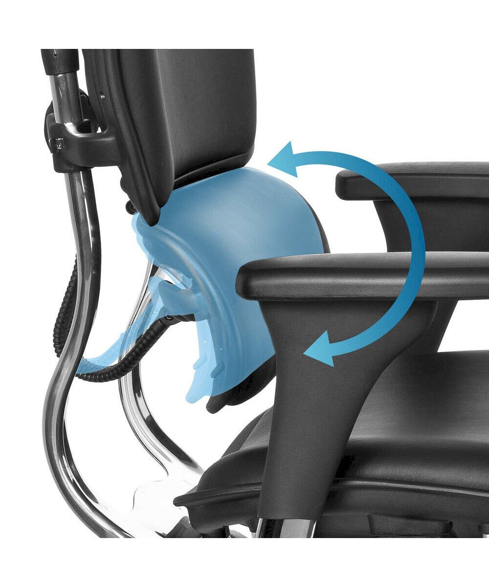 - Réglage vertical, horizontal et radial des accoudoirs au revêtement mi-souple
