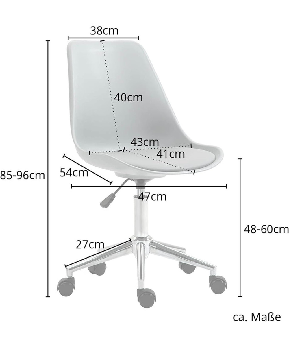 La croix pivotante avec 5 roulettes en caoutchouc dur qui n'abîme pas le sol assure une stabilité et une sécurité optimale. La hauteur réglable en continu permet d'adapter la chaise pivotante à n'importe quelle taille et augmente encore le confort d'assise.