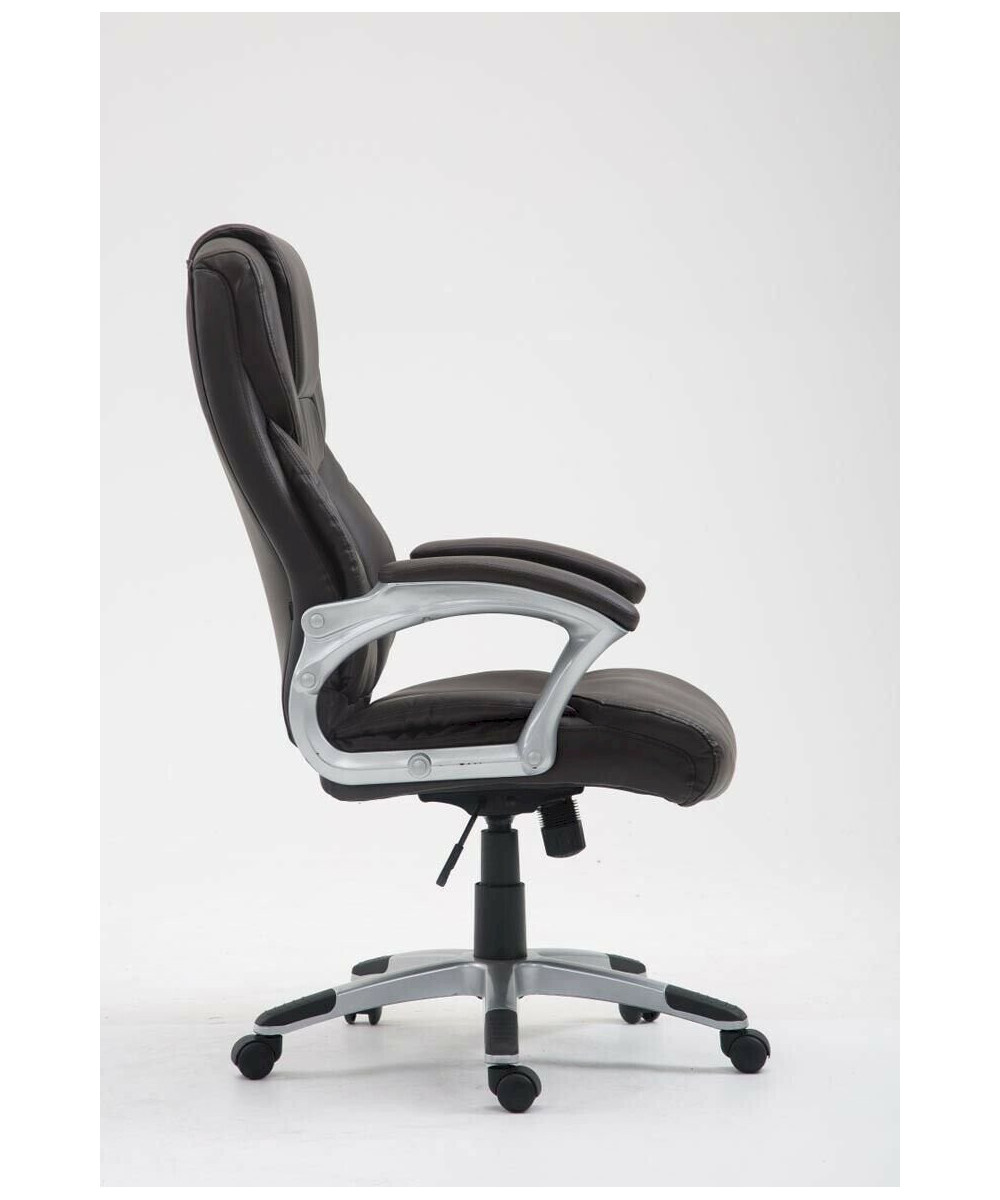 Cette chaise de bureau est idéale pour des personnes de grande taille avec un grand poids car grâce à son système de vérin à gaz elle peut supporter des charges jusqu'à 180 kg. La forme ergonomique de son assise et de son dossier ainsi que le rembourrage et le revêtement en similicuir font d'elle une chaise de bureau très confortable. Sa hauteur réglable vous permet de l'adapter aussi bien à votre taille qu'à la hauteur de votre table, sa capacité à pivoté sur 360° vous donne une flexibilité sur votre position. Le rembourrage de bonne qualité et le revêtement en similicuir de bonne qualité vous garantissent une longue durée d'utilisation. Elle est très facile à nettoyer, vous aurez juste besoin d'un chiffon en coton légèrement humide. La chaise repose sur un piètement en plastique solide doté de 5 roulettes légères qui vous permettent de vous mouvoir facilement. Que ce soit sur des sols lisses ou tapissés, vous vous déplacer avec cette chaise sans contraintes. Revêtement du siège: similicuir (100 % polyuréthane)