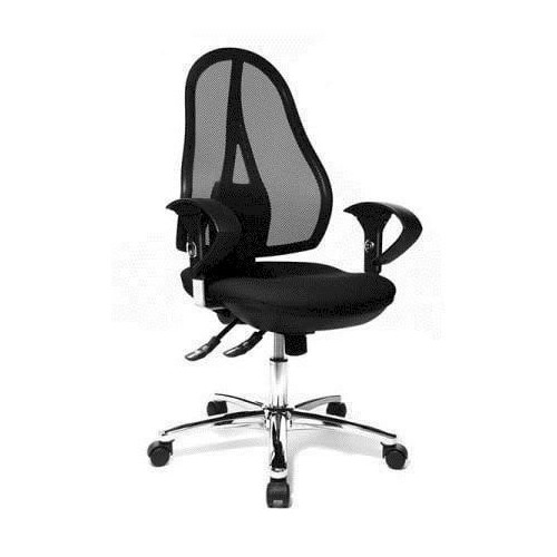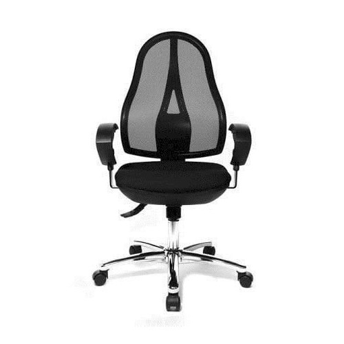 Der Topstar Bürodrehstuhl Open Point Deluxe OP290UG20 überzeugt durch sein tolles Design kombiniert mit ergonomischen Funktionen und stellt somit ein Highlight unter den Drehstühlen dar. Der Netzrücken ist ein Designelement und sorgt bei optimaler Rückenunterstützung für eine angenehme Luftzirkulation. Zudem ist der Stuhl mit Synchronmechanik ausgestattet und hat eine höhenverstellbare Rückenlehne sowie höhenverstellbare Armlehnen. Der Drehstuhl ist bis zu 110 kg belastbar. Die Abmessungen der Sitzfläche betragen 48 x 48 cm, die Sitzhöhe beträgt zwischen 43 und 51 cm, die Gesamthöhe 101 - 119 cm. Die Rückenlehne hat die Maße 48 x 60 cm. Die Farbe des Rückenteils (Netz) sowie der Sitzfläche ist schwarz.