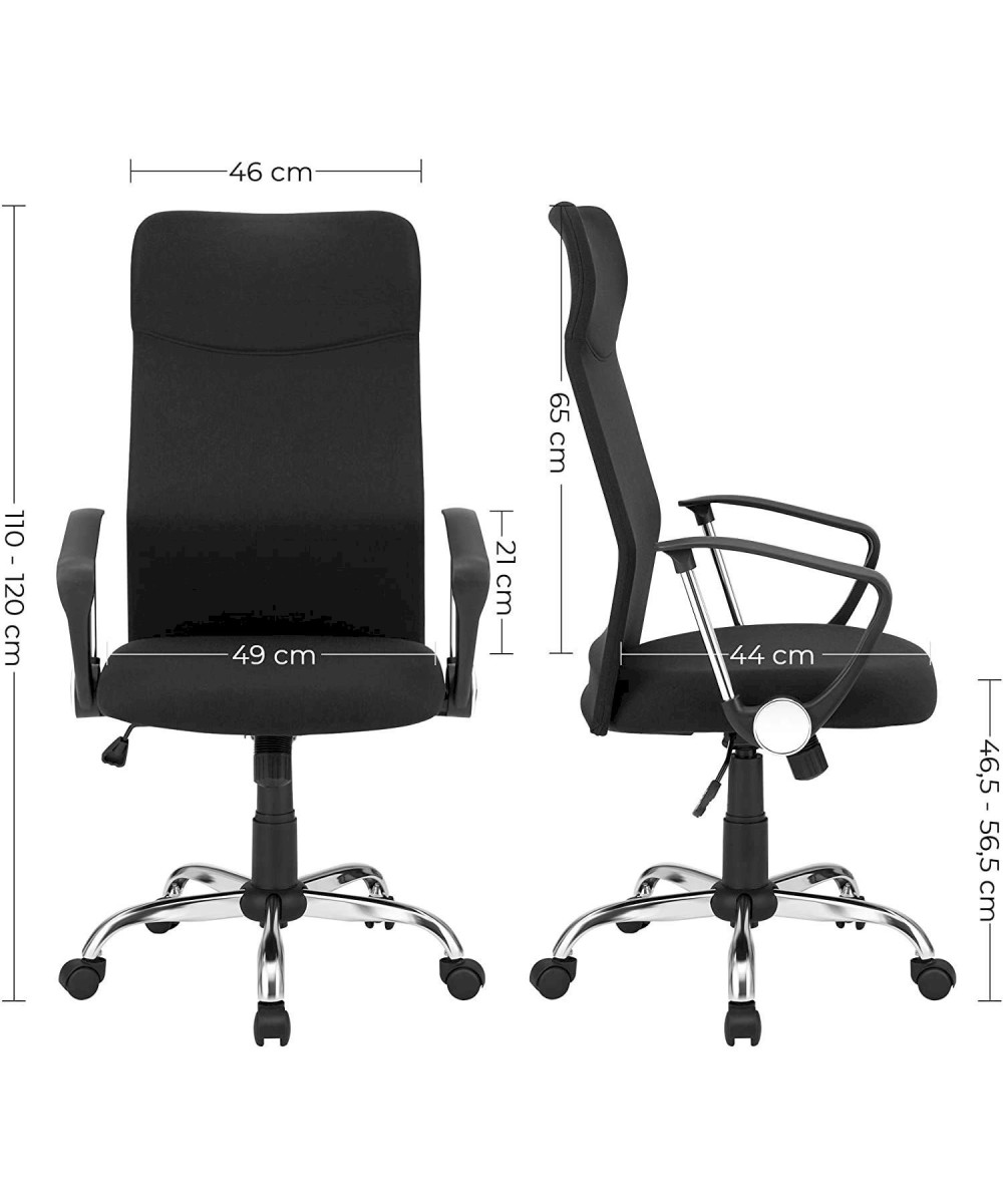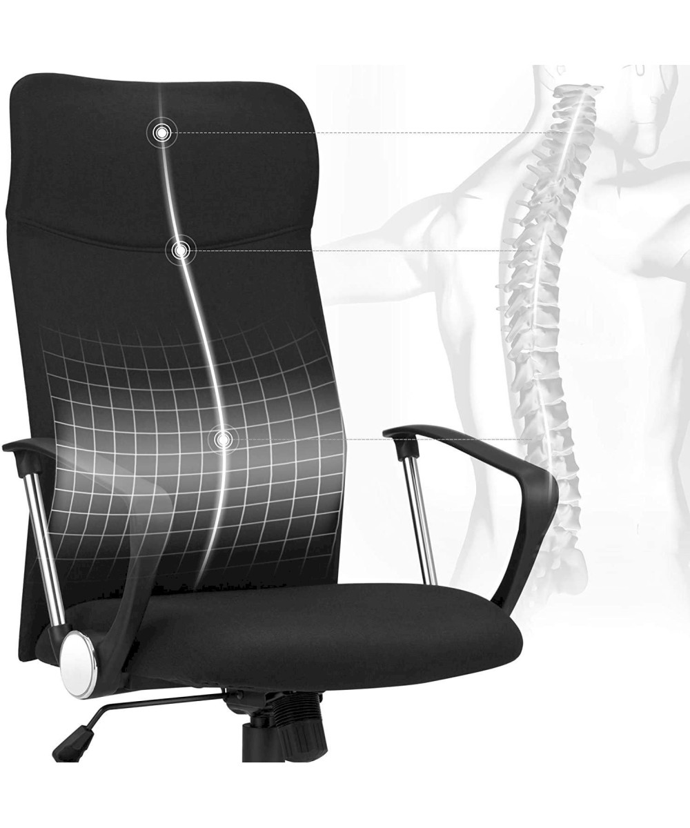 SONGMICS Fauteuil de Bureau en Tissu Chaise Ergonomique Noir OBN034B0
