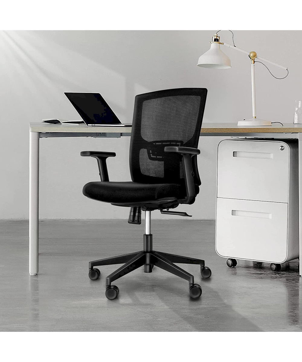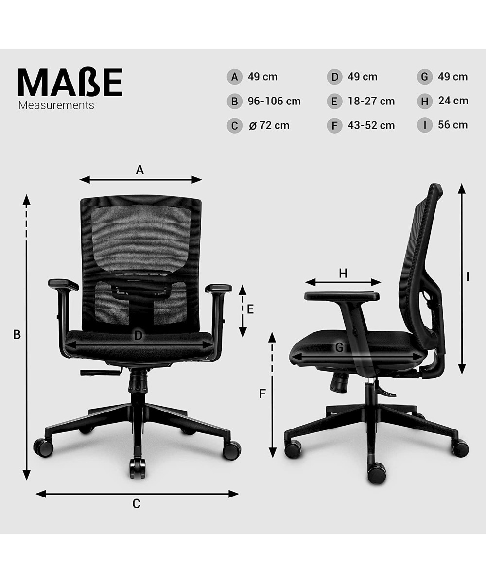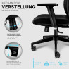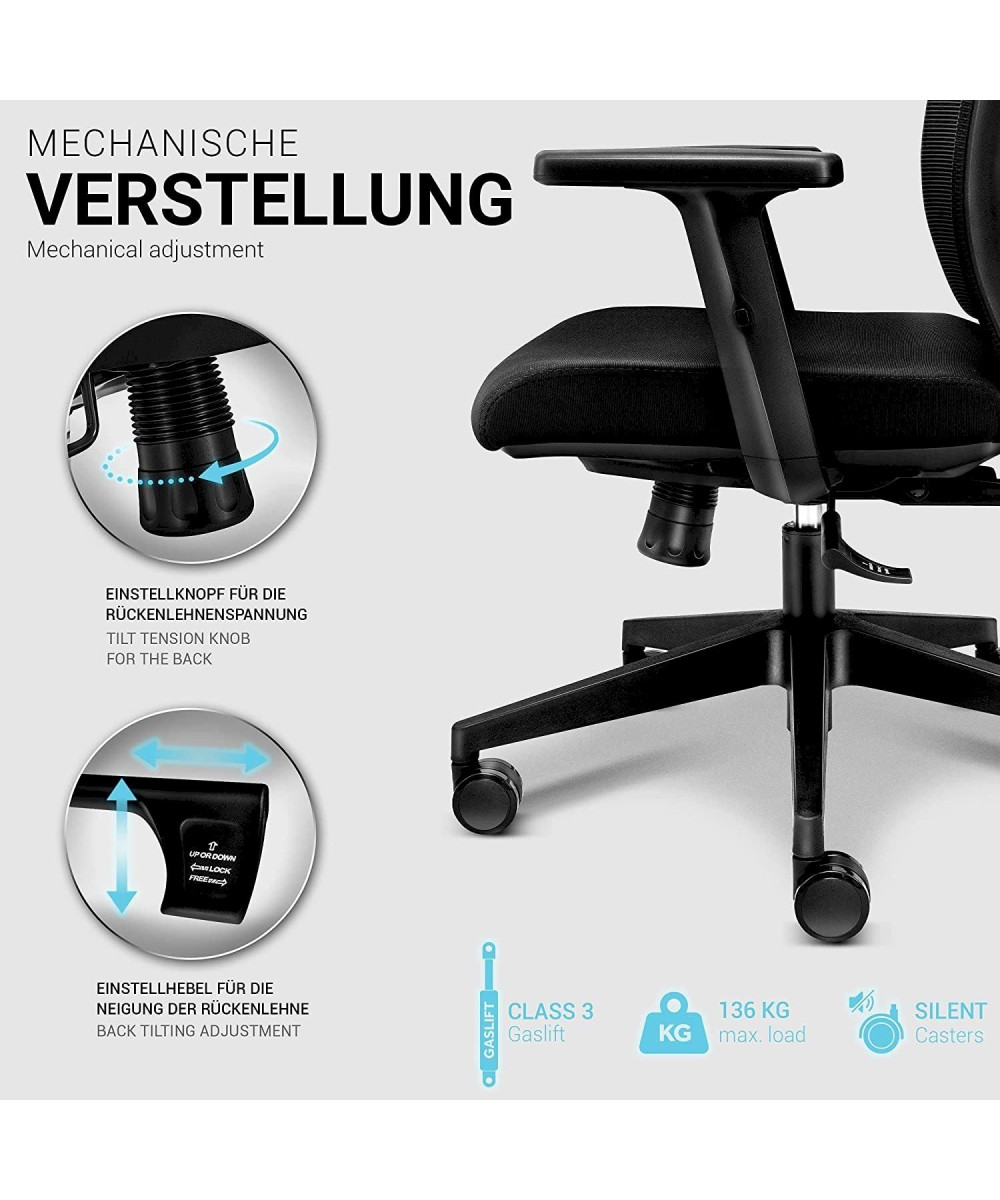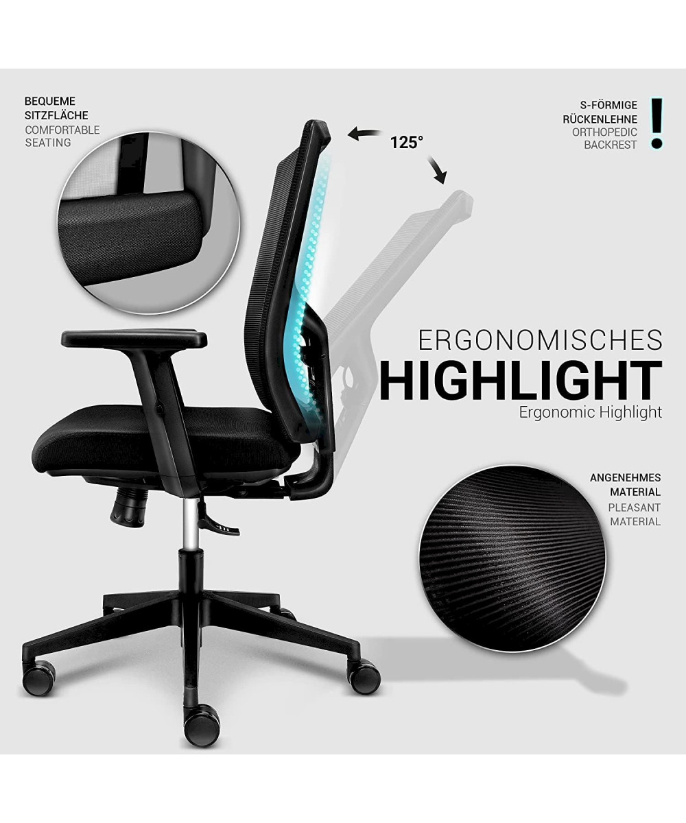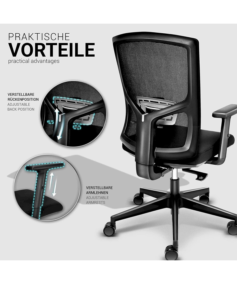 La force du dossier de notre chaise de bureau est entièrement réglable. En outre, il est équipé d'un support lombaire réglable en hauteur.