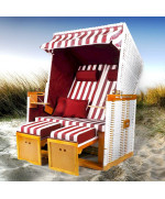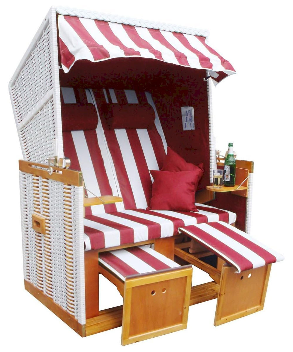 BRAST Corbeille de plage mer Baltique Norderney blanc/rouge rayée