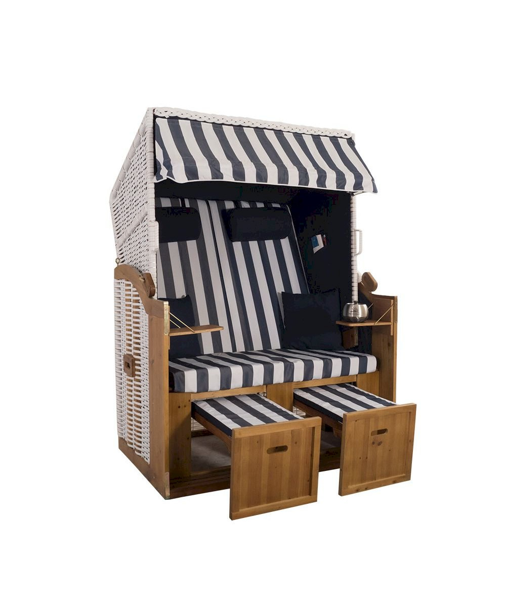 Corbeille de plage Hörnum 2 places - Idéale pour le jardin, la terrasse ou le balcon. Avec ses panneaux latéraux incurvés typiques de la mer Baltique et ses ferrures galvanisées, il offre un excellent rapport qualité/prix.