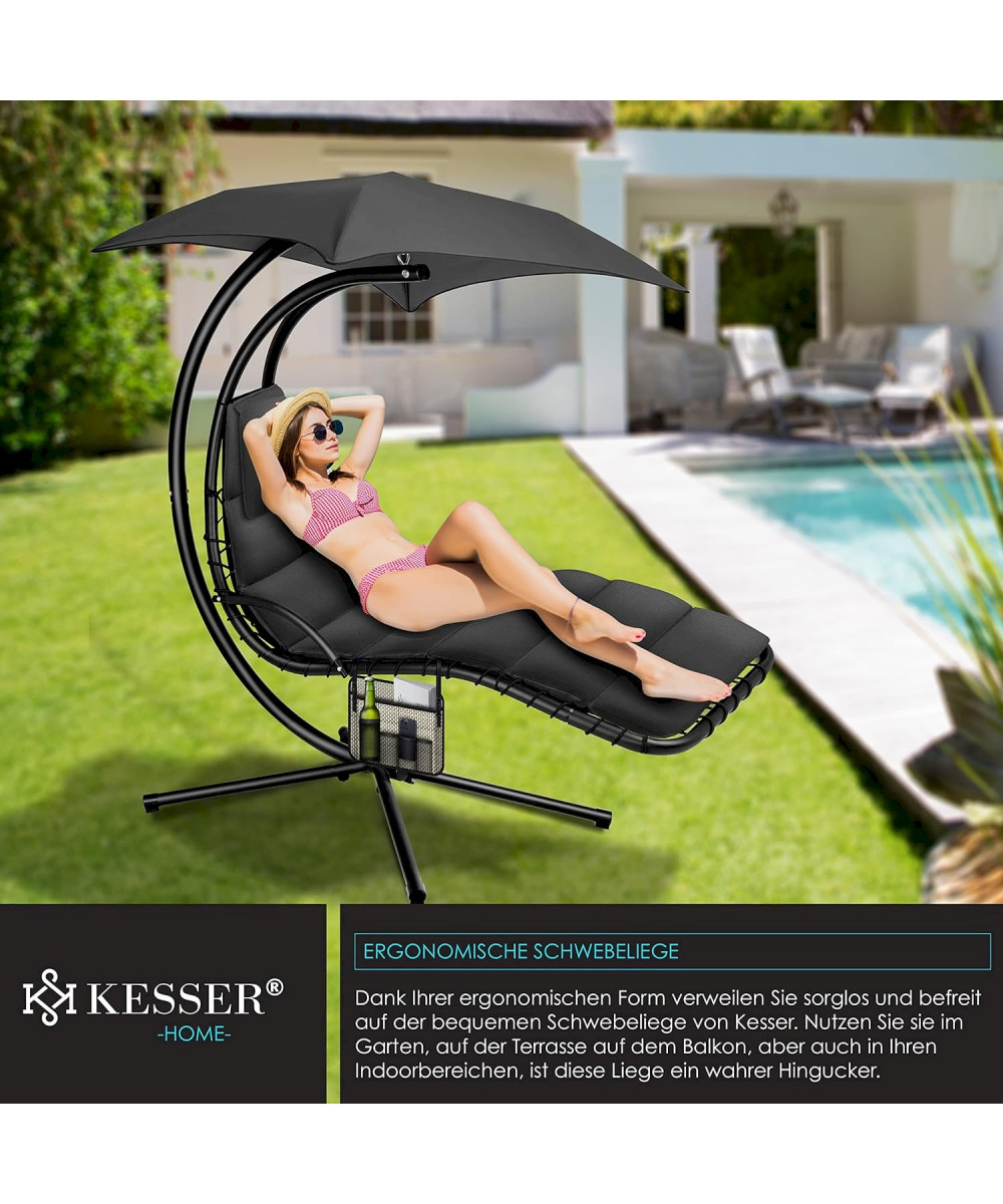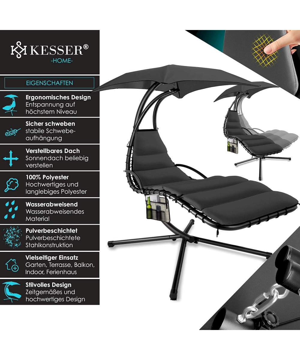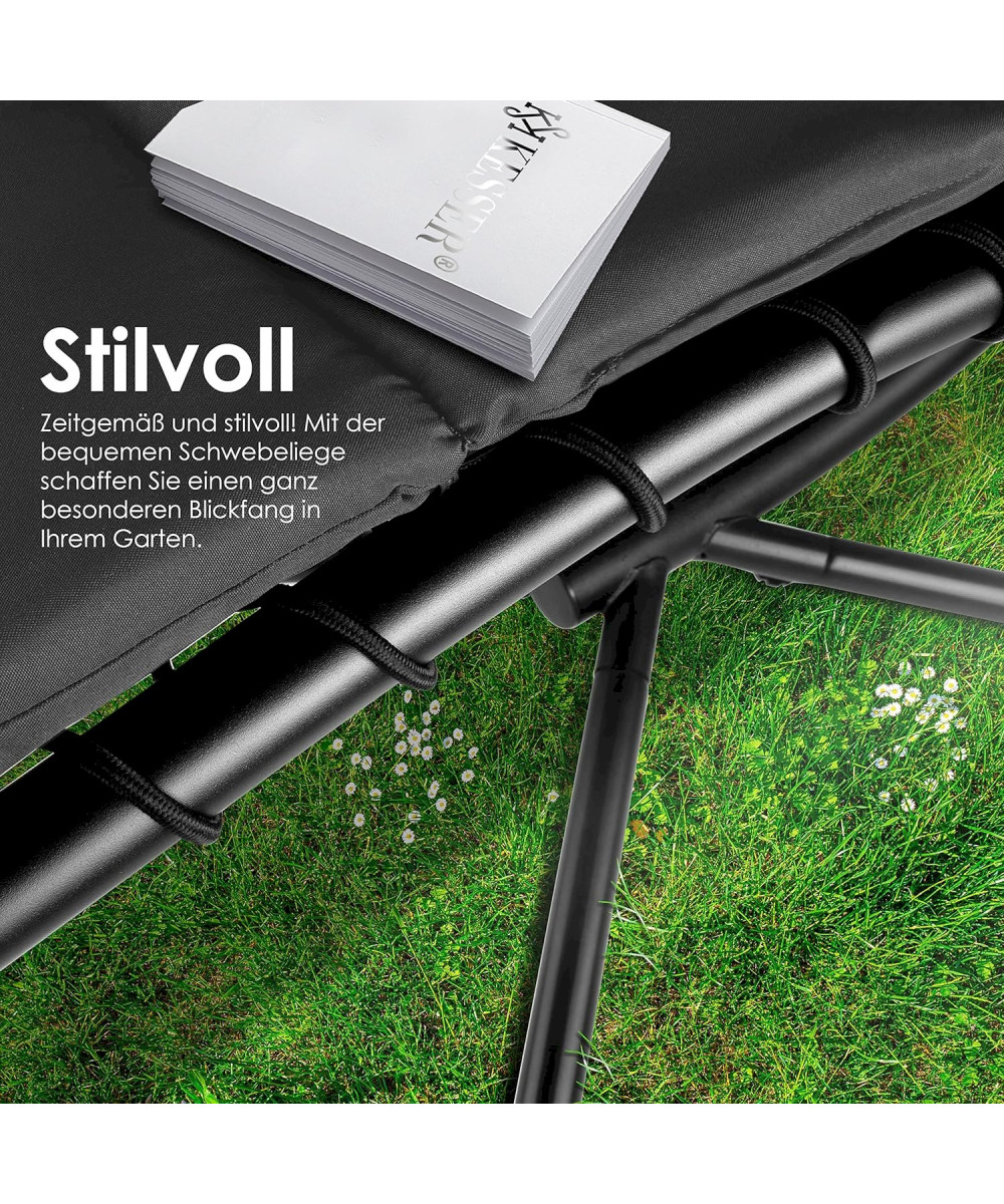 Le hamac confortable transmet des sensations de vacances et vous invite à prendre le soleil. Vous pouvez facilement lire un livre, vous détendre, vous reposer ou tout simplement faire sortir la journée ? La chaise longue relaxante Kesser vous soutiendra dans ce domaine. Grâce à son design beau et moderne, cette chaise longue flottante élégante est un point fort absolu dans votre jardin, sur la terrasse ou sur le balcon et sert de lieu idéal pour se détendre.