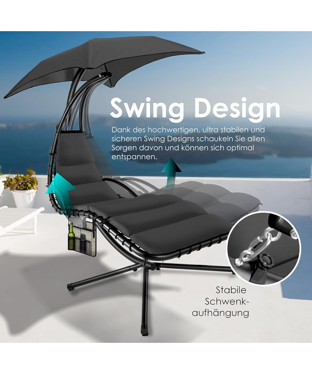 Chaise longue suspendue à bascule avec parasol jusqu'à 120kg anthracite
