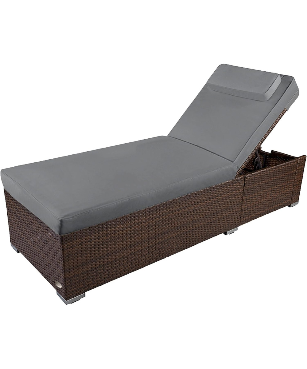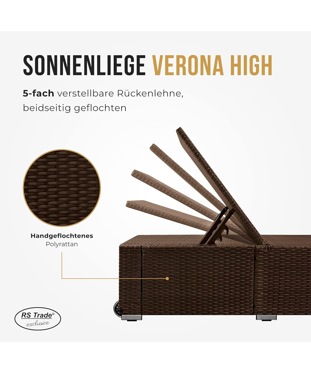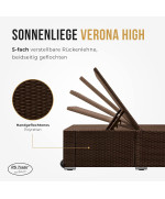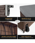 Chaise longue Verona High en polyrotin avec roulettes et dossier réglable gris/brun