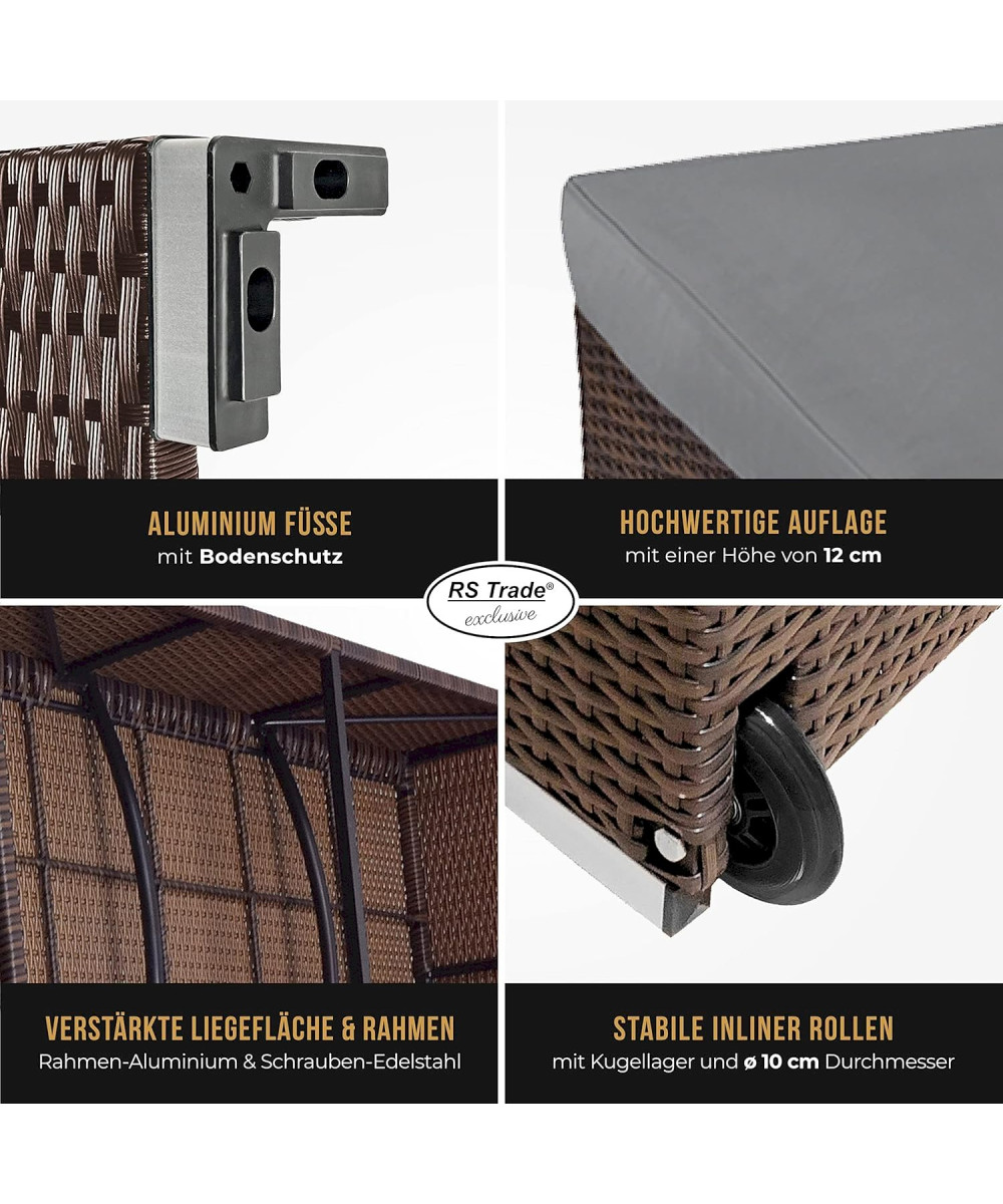 - chaque chaise longue est composée de poly rotin tressé à la main (1,2 mm d'épaisseur)