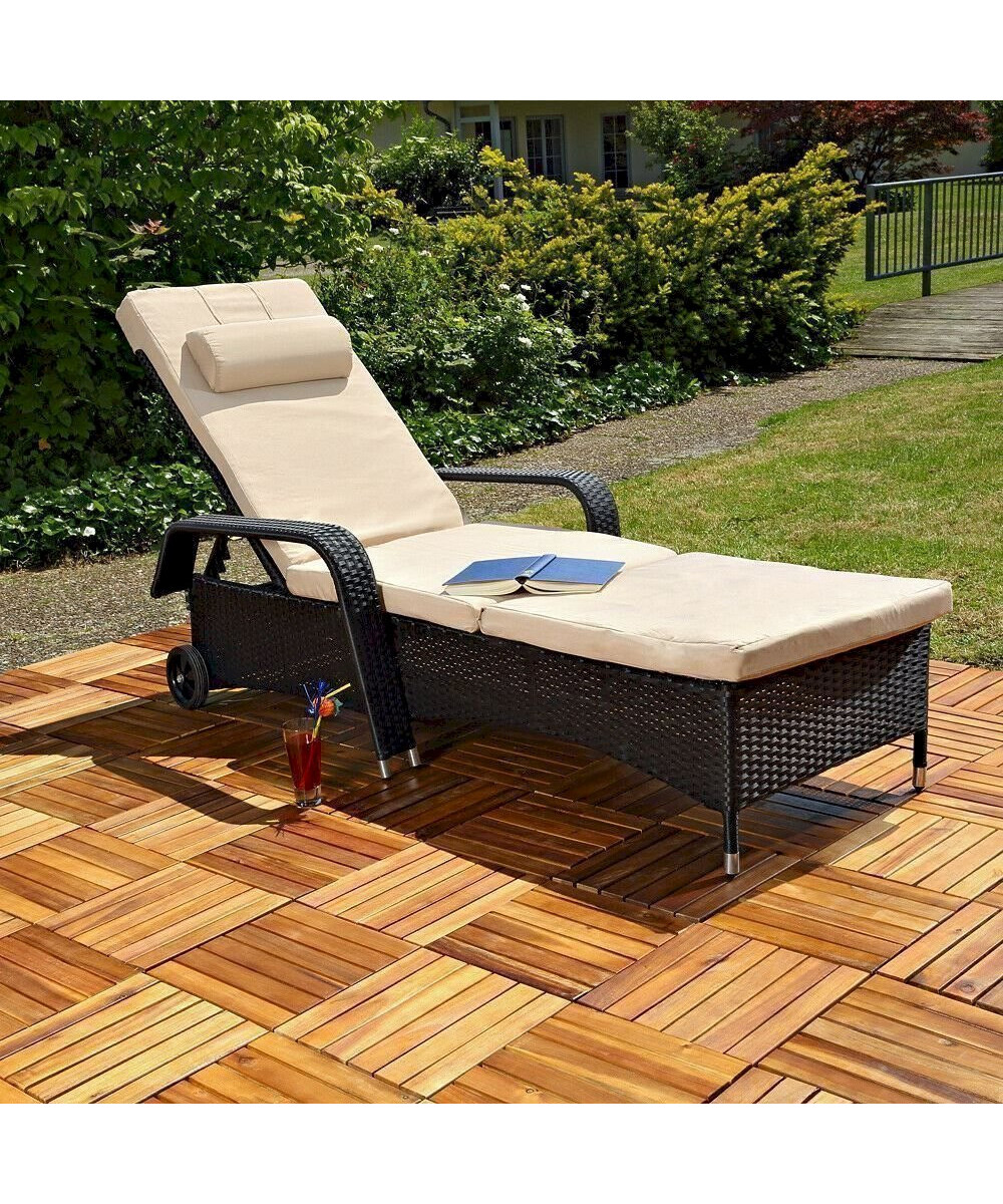Mucola 50001583 Bain de soleil en rotin, Bain de jardin en rotin Poly-rotin, Meubles en rotin Terrasses Bain de soleil, noir