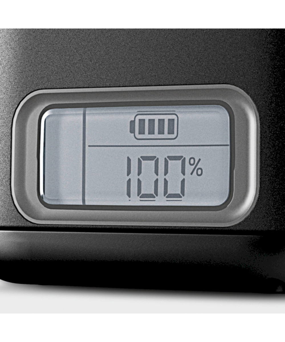 L'écran LCD intégré indique à tout moment l'autonomie restante, le temps de charge restant et l'état de charge. - Batterie interchangeable 36 V Battery Power+ Kärcher