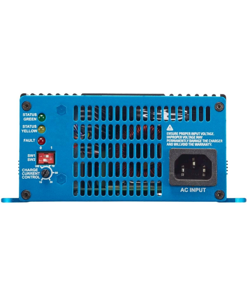 - une batterie de 24V/300Ah serait entièrement rechargée en seulement 8 heures et 24 minutes à une puissance de charge de 100%
