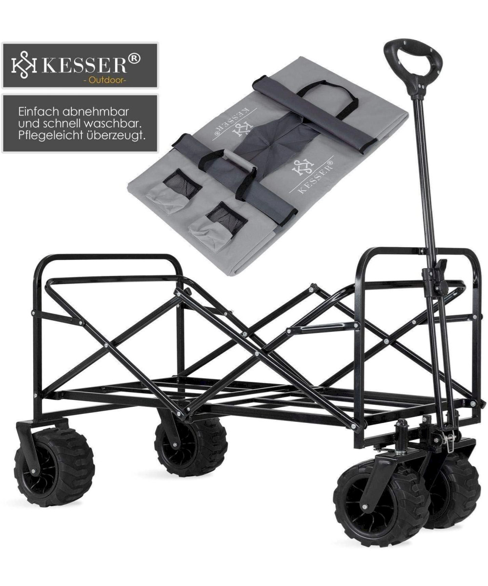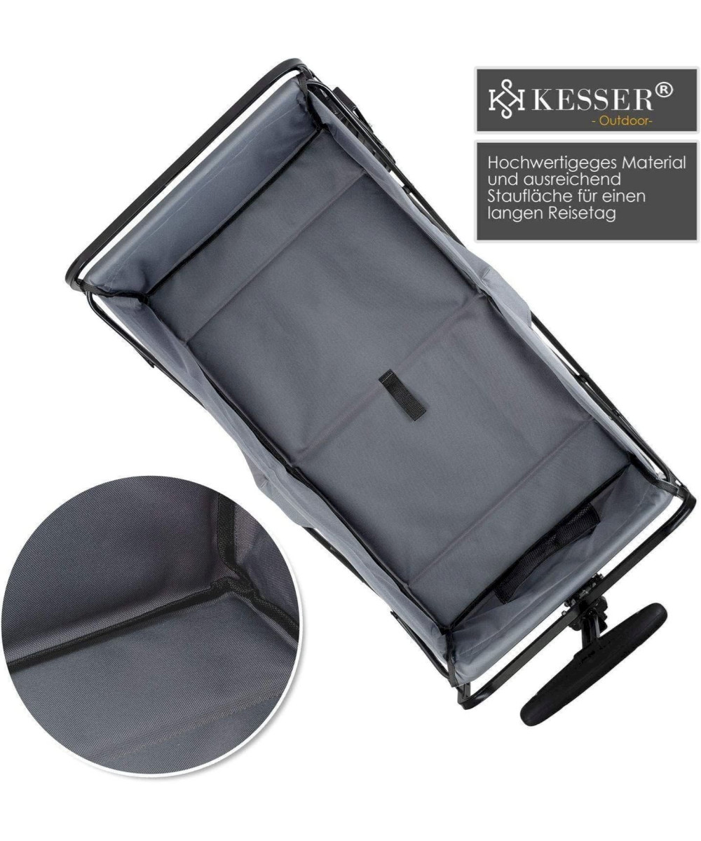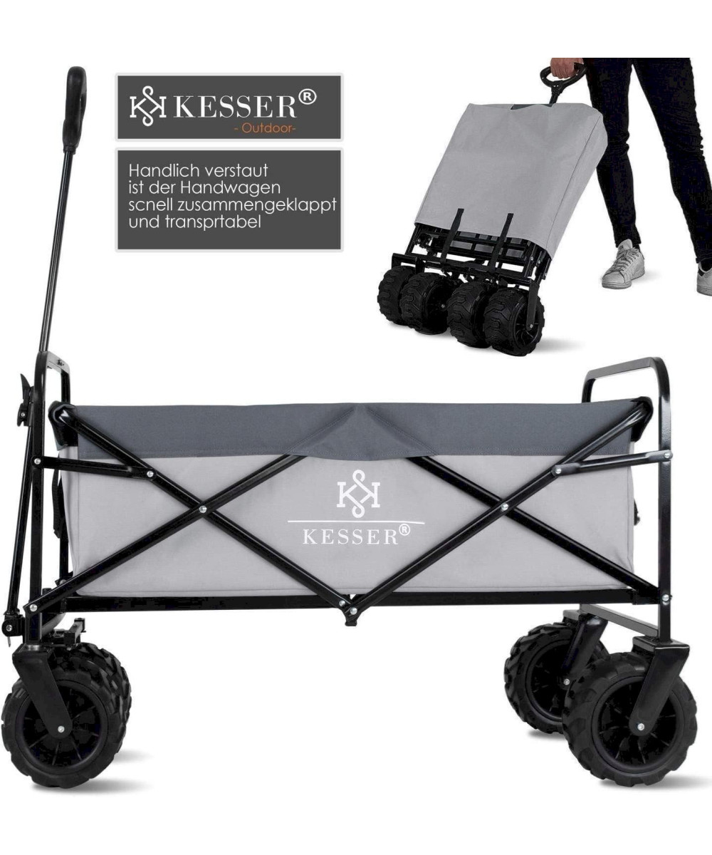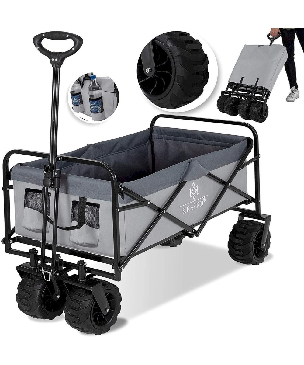 Le chariot pliable Kesser avec des roues extra larges et épaisses est polyvalent.