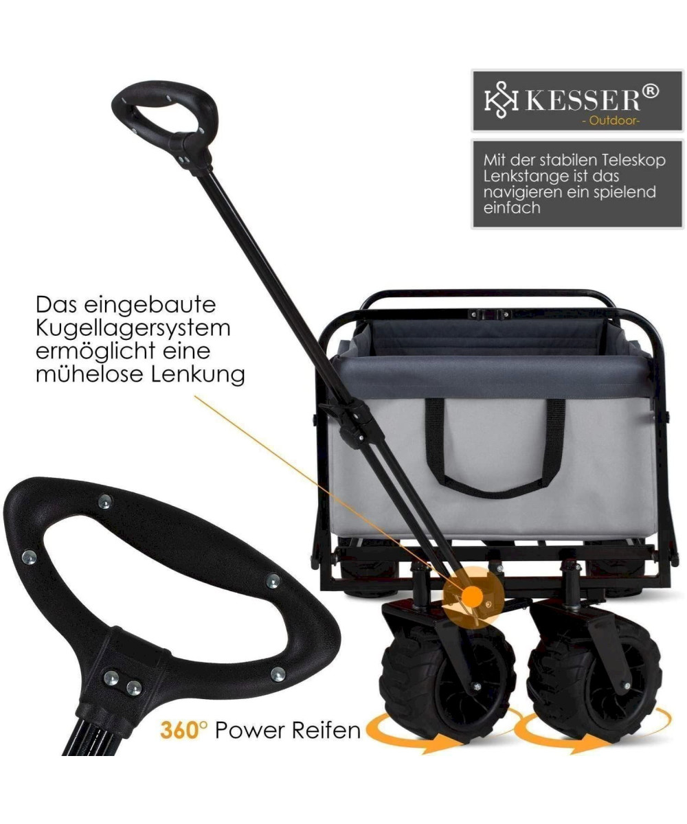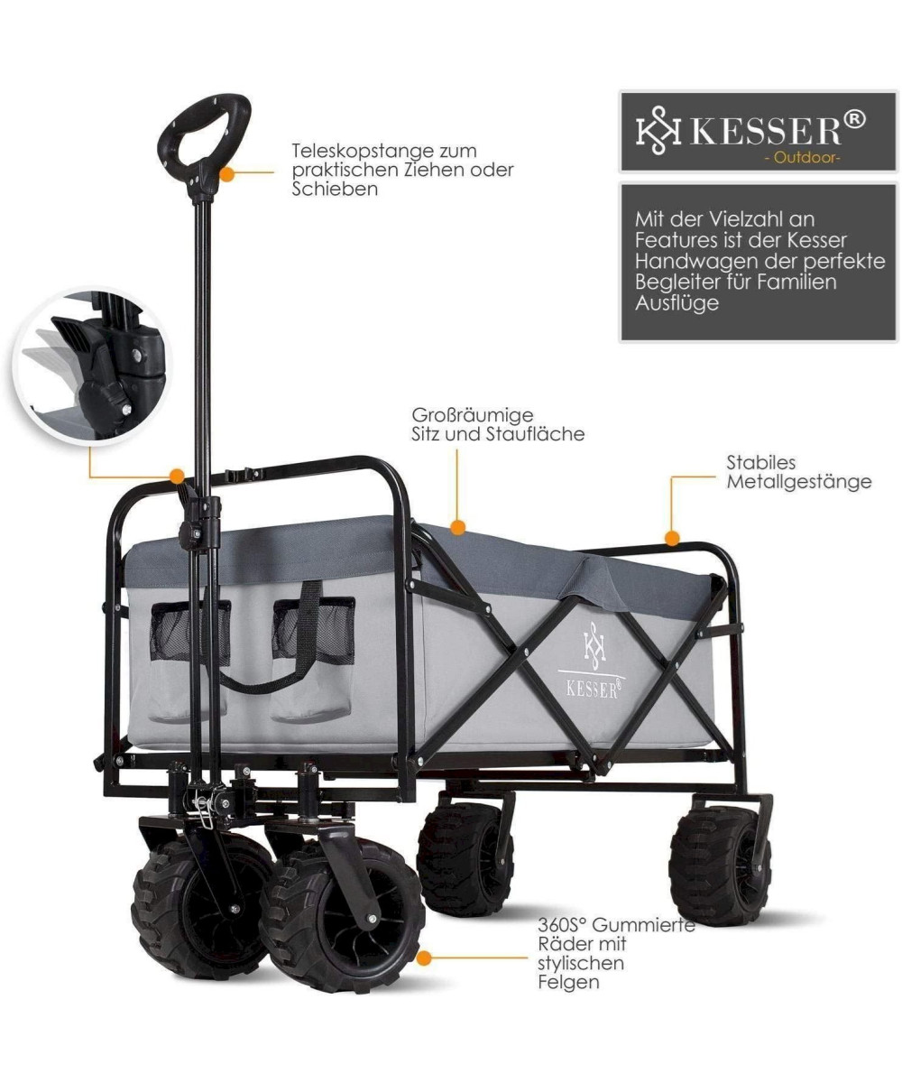 Le chariot pliable Kesser est votre compagnon idéal pour toutes les excursions. Avec sa grande surface de chargement et le support supplémentaire pour boissons offrent suffisamment de place pour les excursions avec les enfants, les festivals ou d'autres activités de loisirs, il se monte rapidement et se range à nouveau pour gagner de la place.